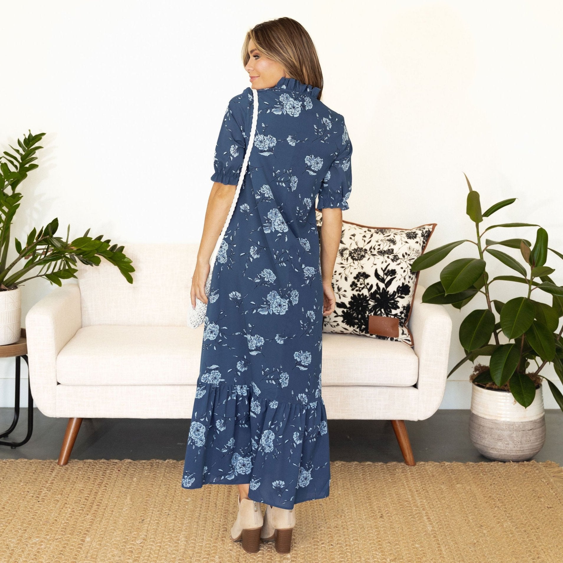 Looking for a dress that's equal parts style and comfort? Look no further! Our Winnie Dress is the perfect addition to your wardrobe. This flowy and fashionable piece features a V neck and ruffle sleeves that'll make you feel like a million bucks. Plus, the ankle length ensures it's both flattering and easy to wear. Check out our collection and get ready to turn heads wherever you go!