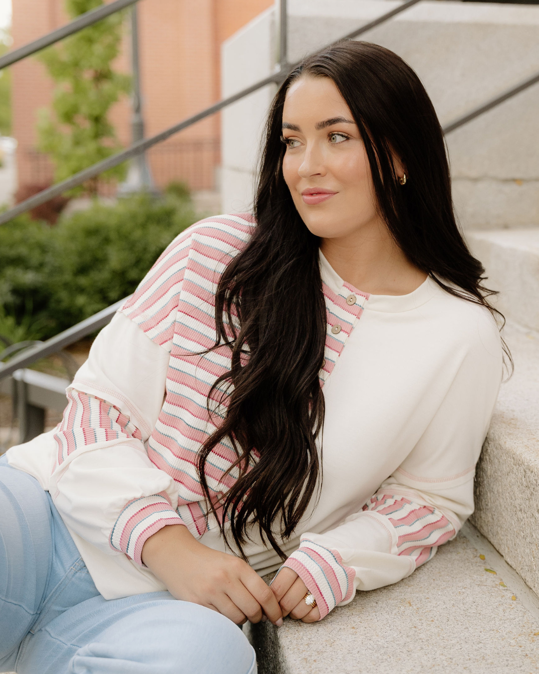 - Featuring a relaxed and oversized fit, this top offers both comfort and versatility.