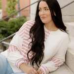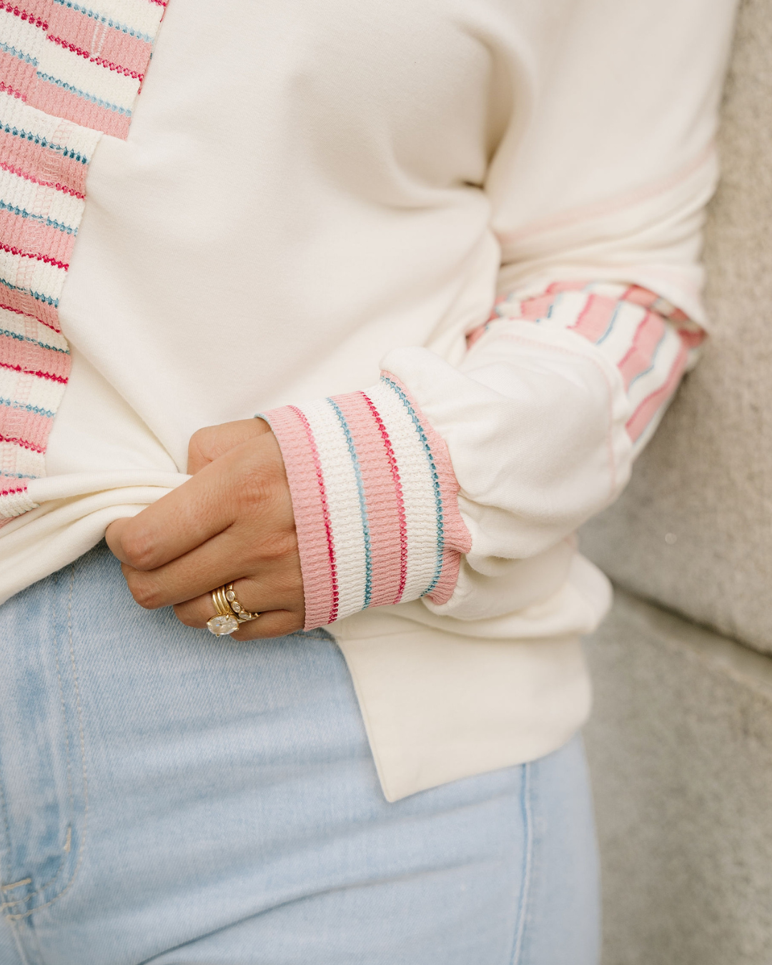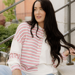- The patchwork design adds a unique touch to this top, creating a modern and eye-catching look that sets it apart from ordinary pullovers.