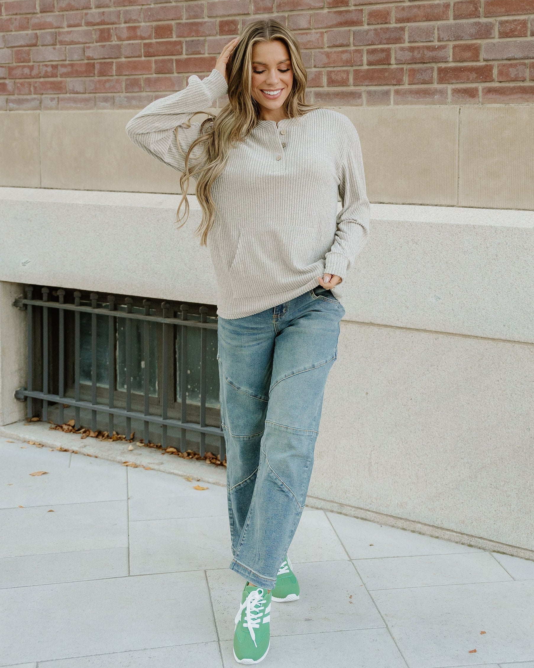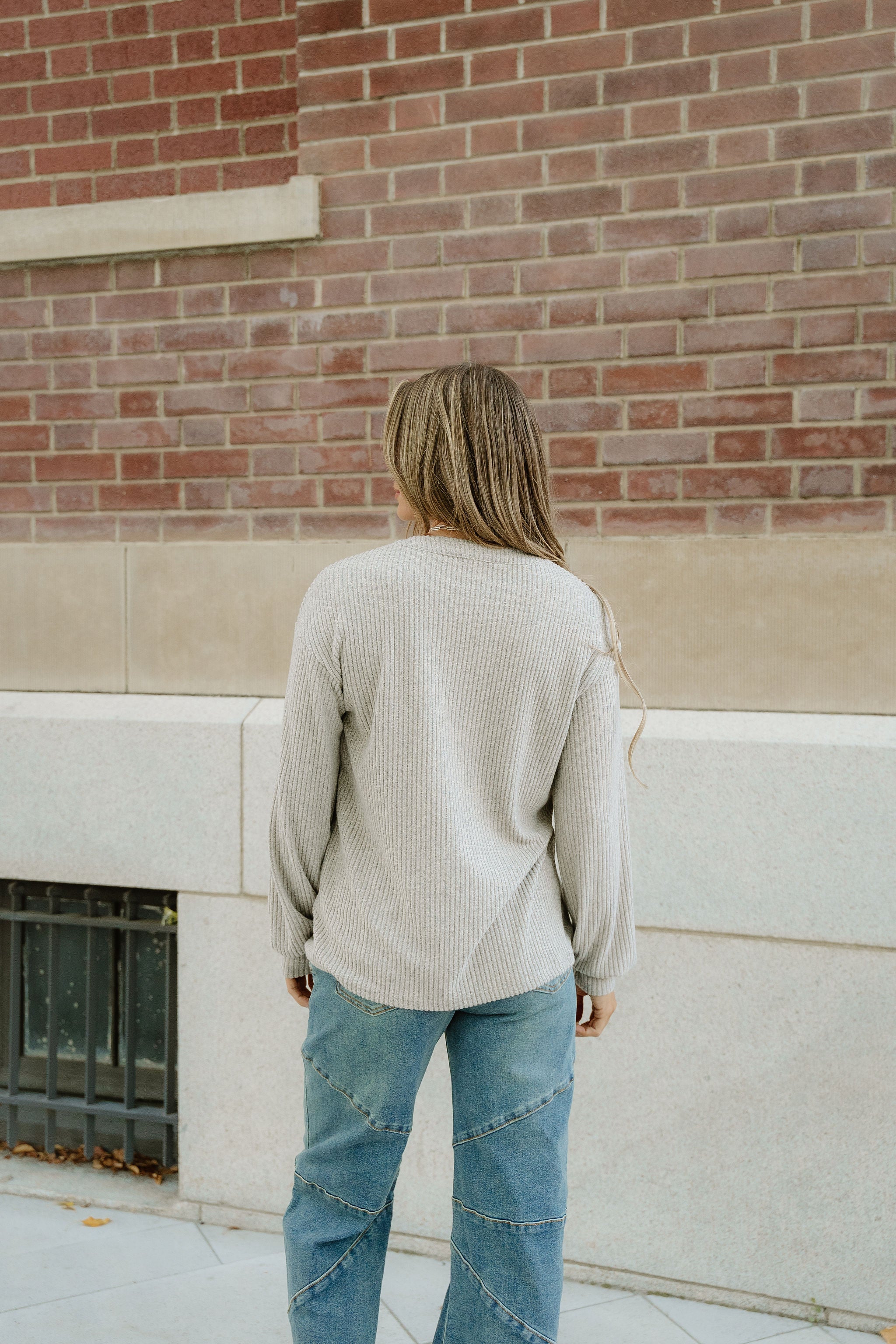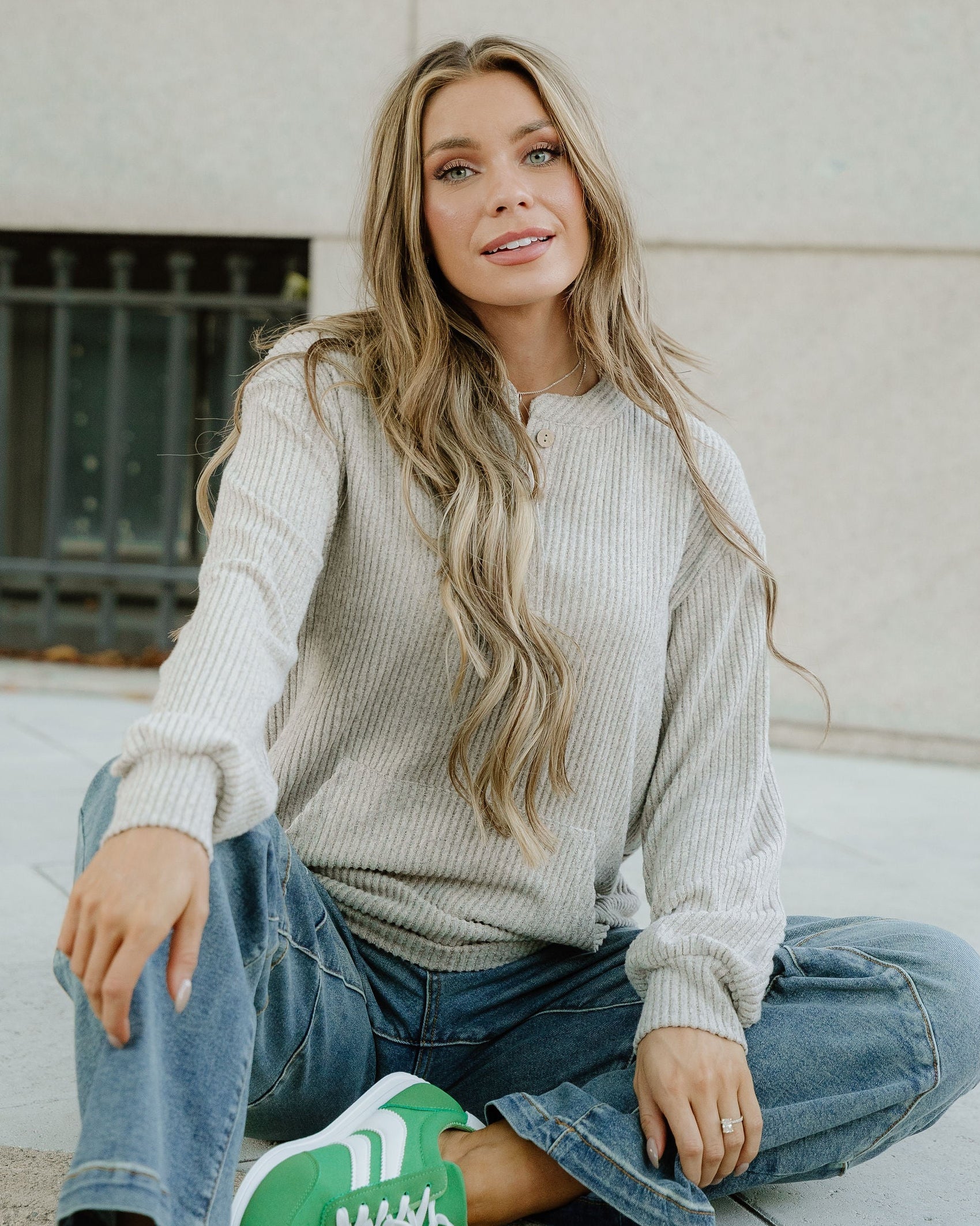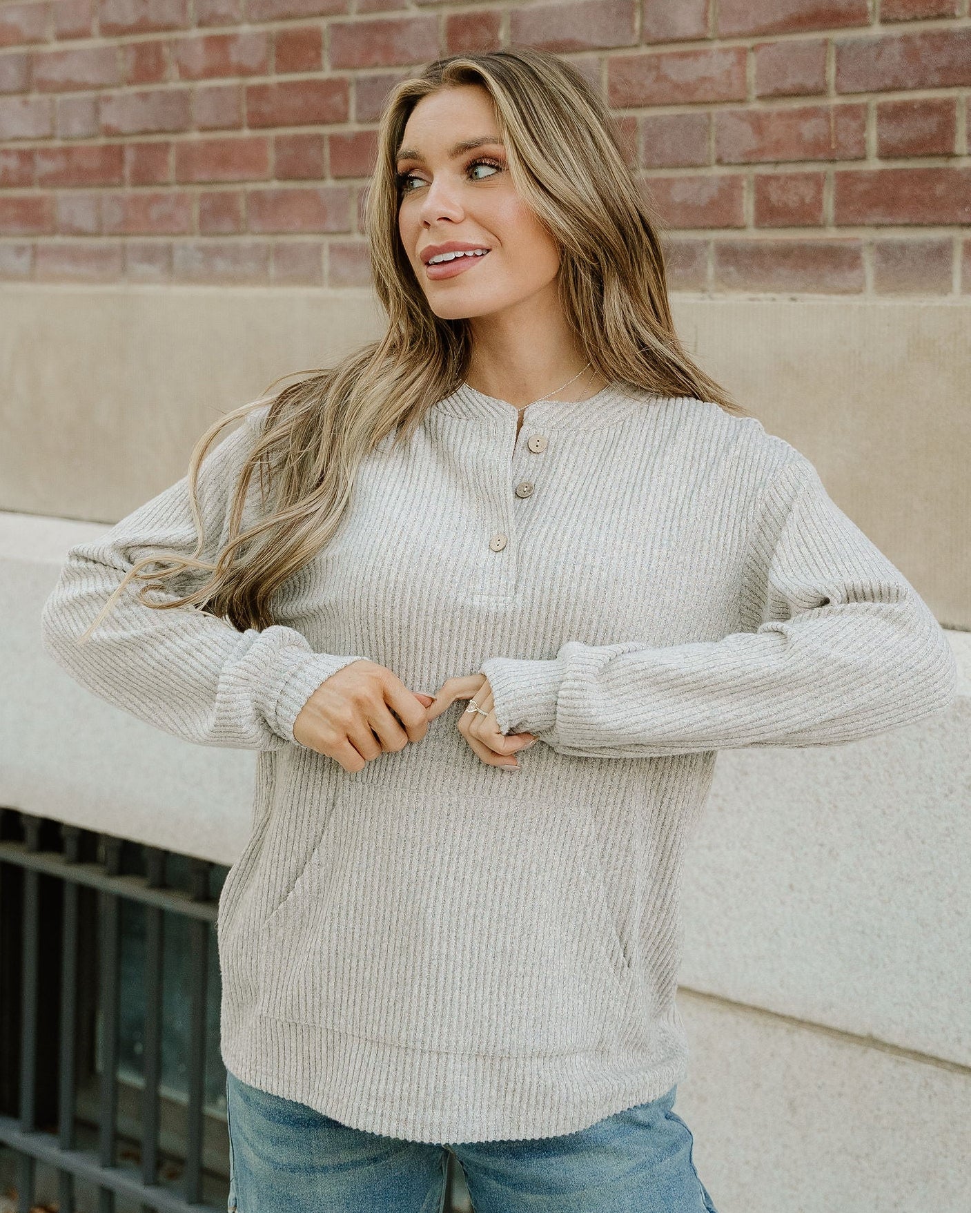 Addison Ribbed Texture Drop Shoulder Henley Knit Top | Dropship