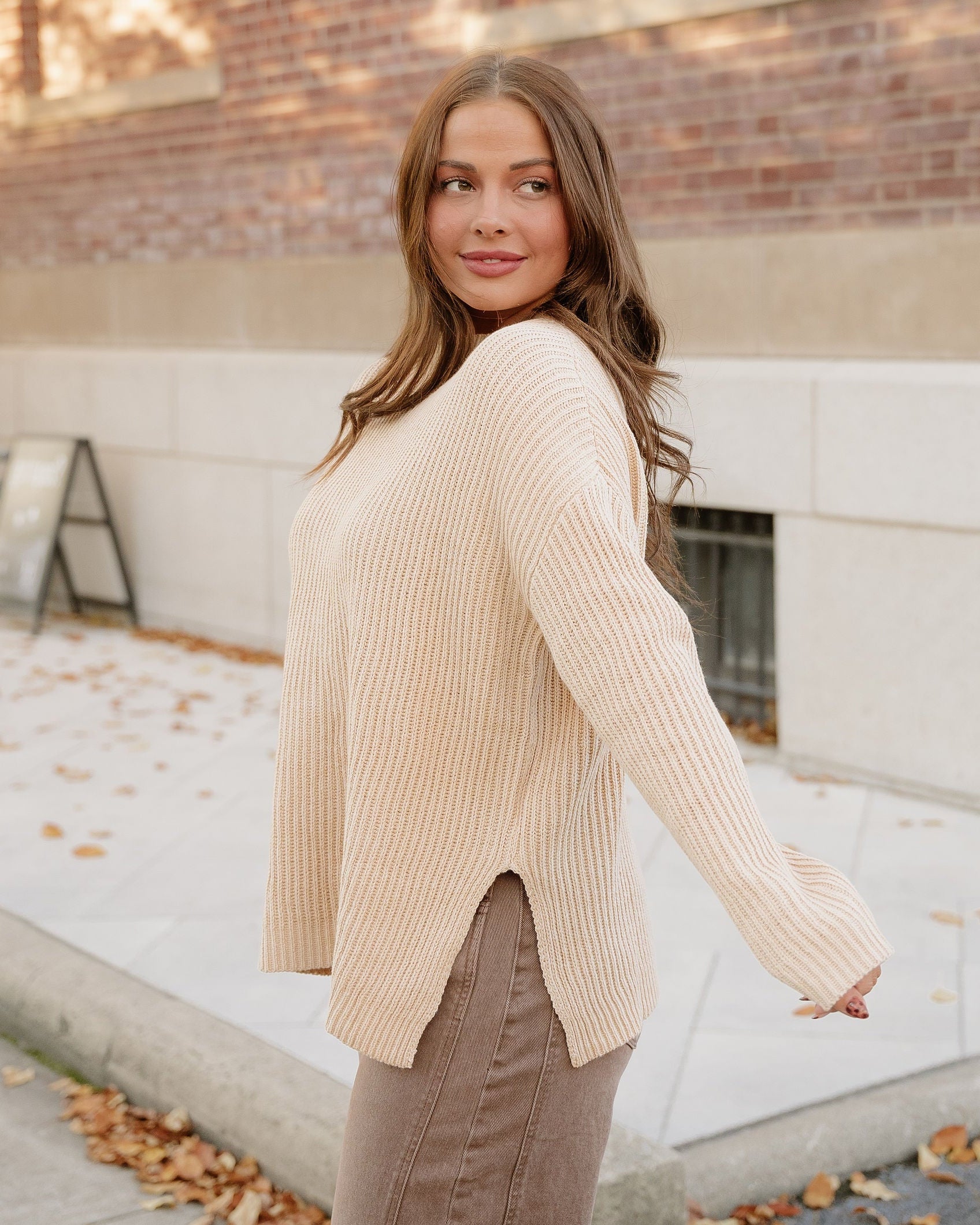 Addison Ribbed Texture Drop Shoulder Henley Knit Top | Dropship