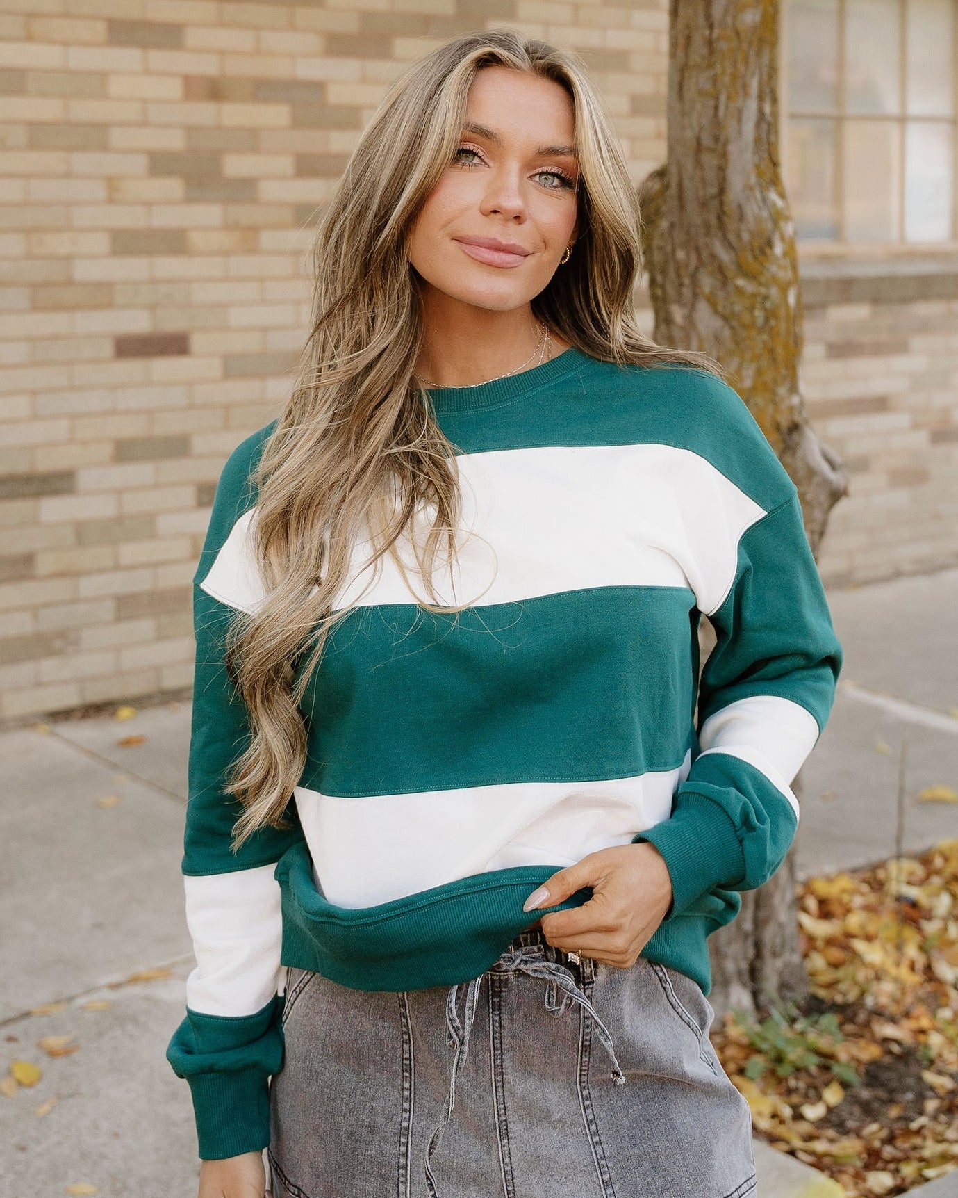 Sophie Striped Colorblock Patchwork Oversized Sweatshirt - Brown | Dropship