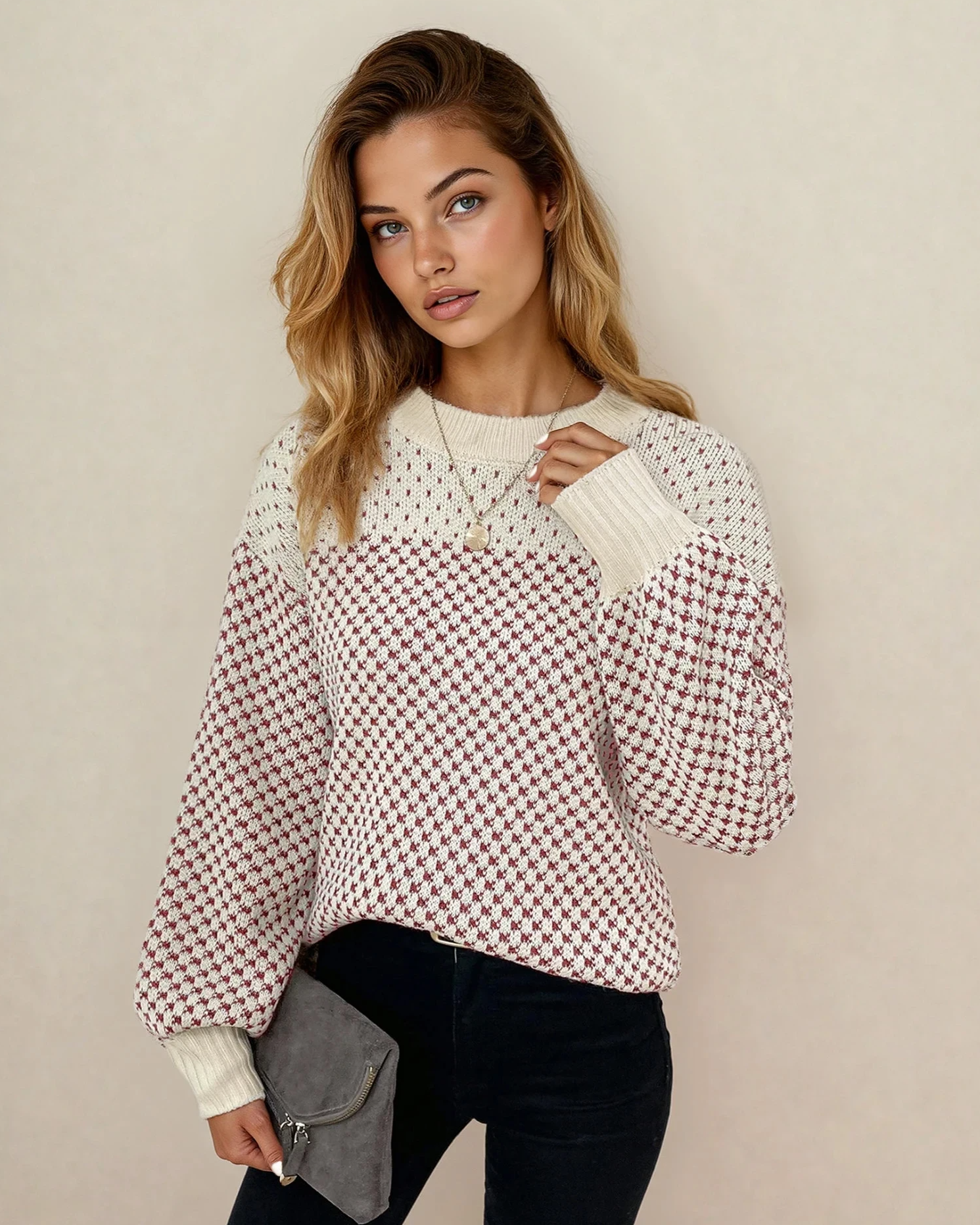 Flower Power Checkered Henley Sweater - Red Dahlia | Dropship