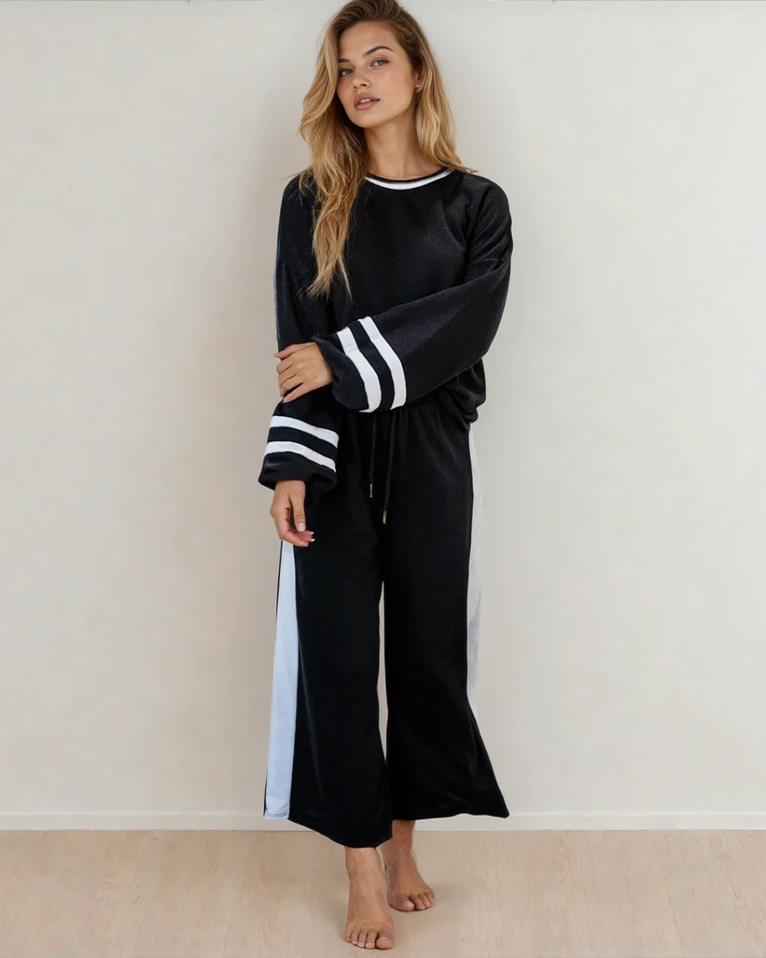 Pullover Wide Leg Pants 2pcs Outfit - Black | Dropship