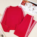 Varsity Pullover Wide Leg Pants 2pcs Outfit - Red | Dropship