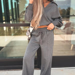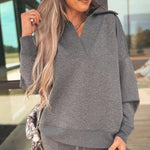 Medium Grey Collared V Neck Pullover Sweatshirt Sweatpants Set | Dropship