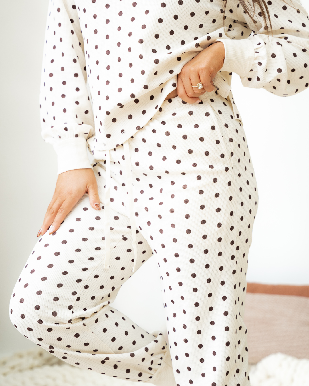 Liliana Polka Dot Print Pullover Drawstring Jogger Pants Pajama Set | Dropship