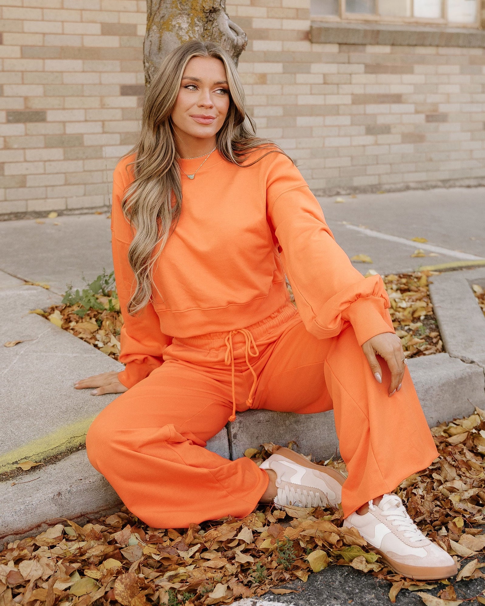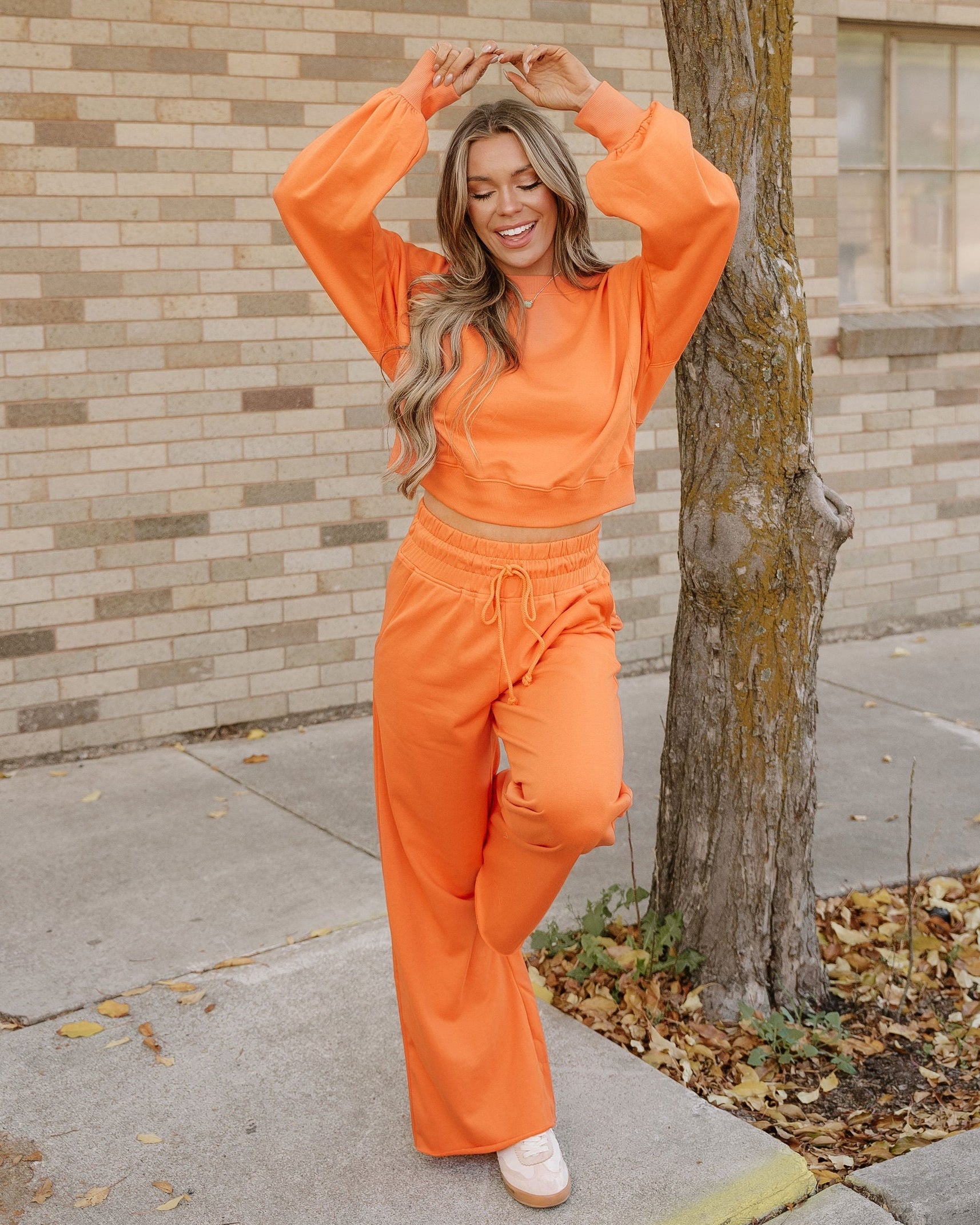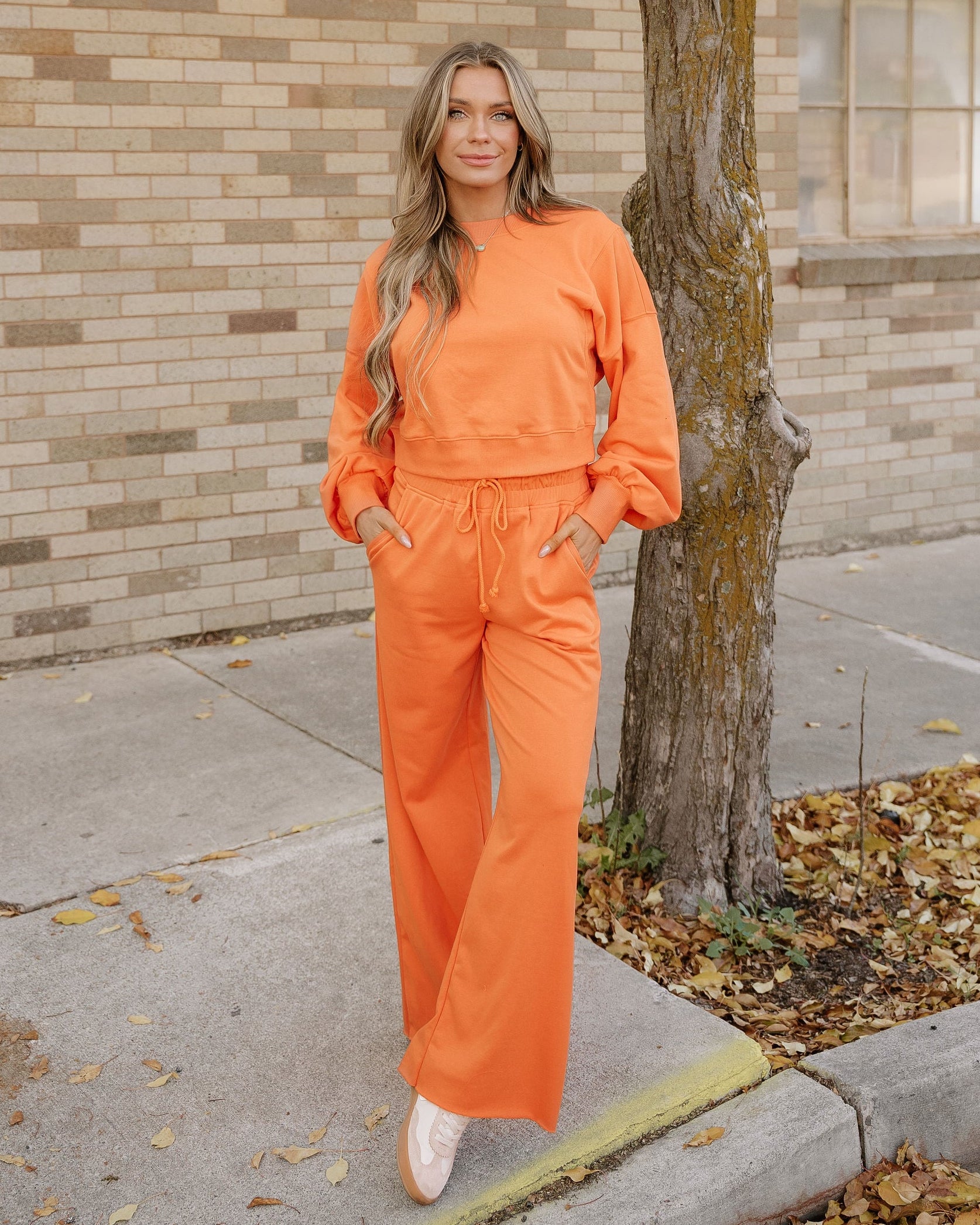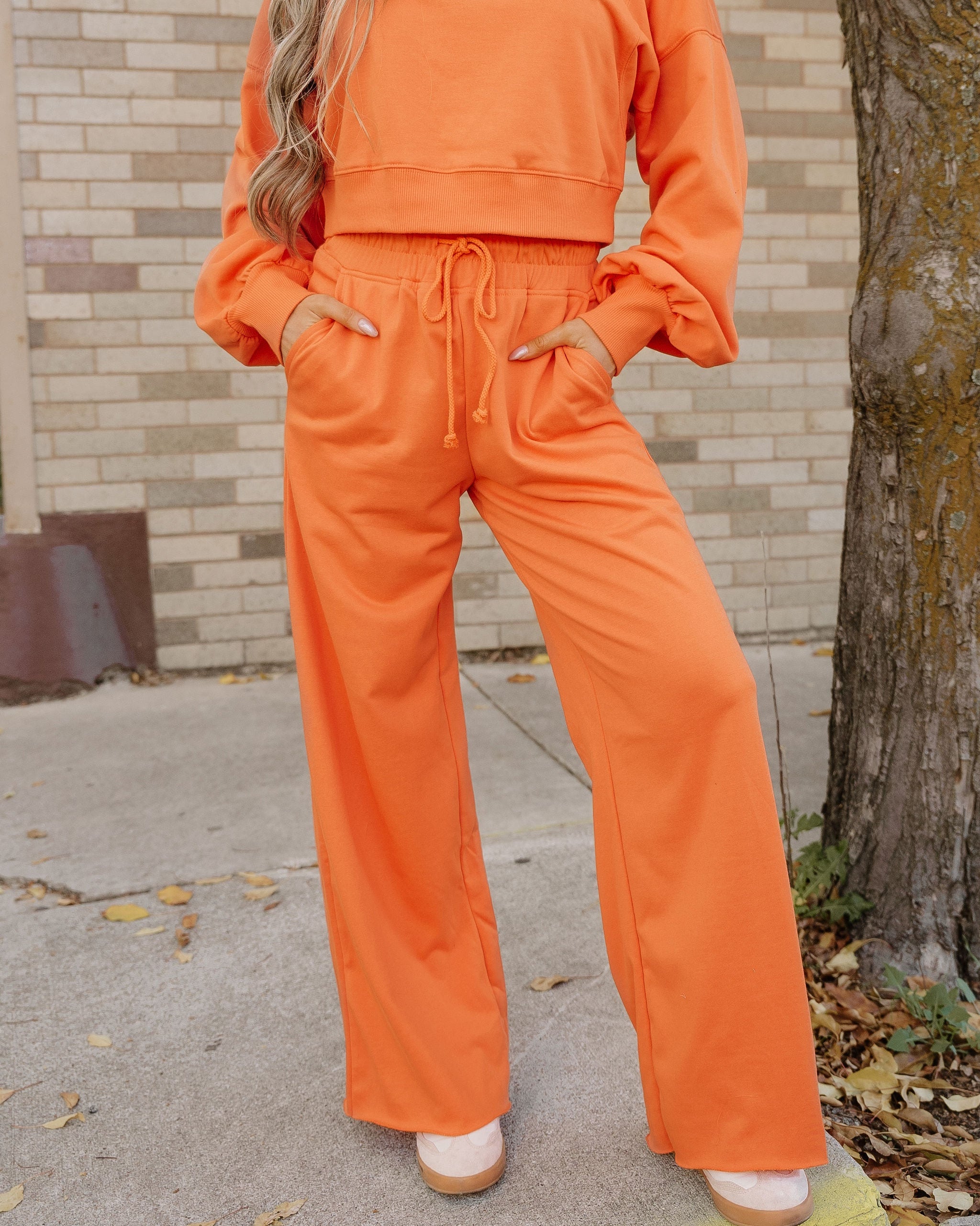 - The drawstring waist on the wide-leg pants ensures a customizable fit.