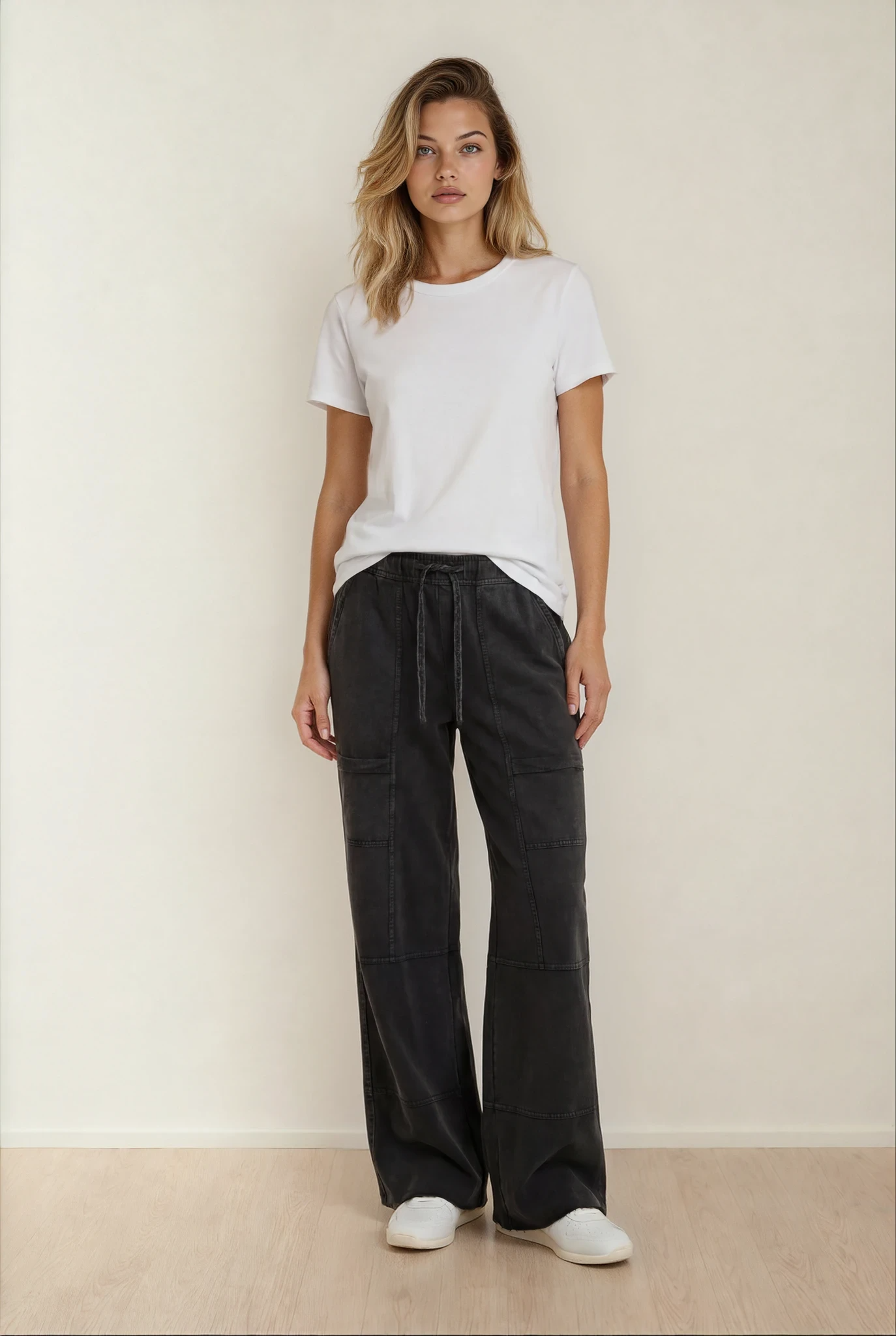 Hannah Mineral Wash Exposed Seam Wide Leg Cargo Pants - Black | Dropship