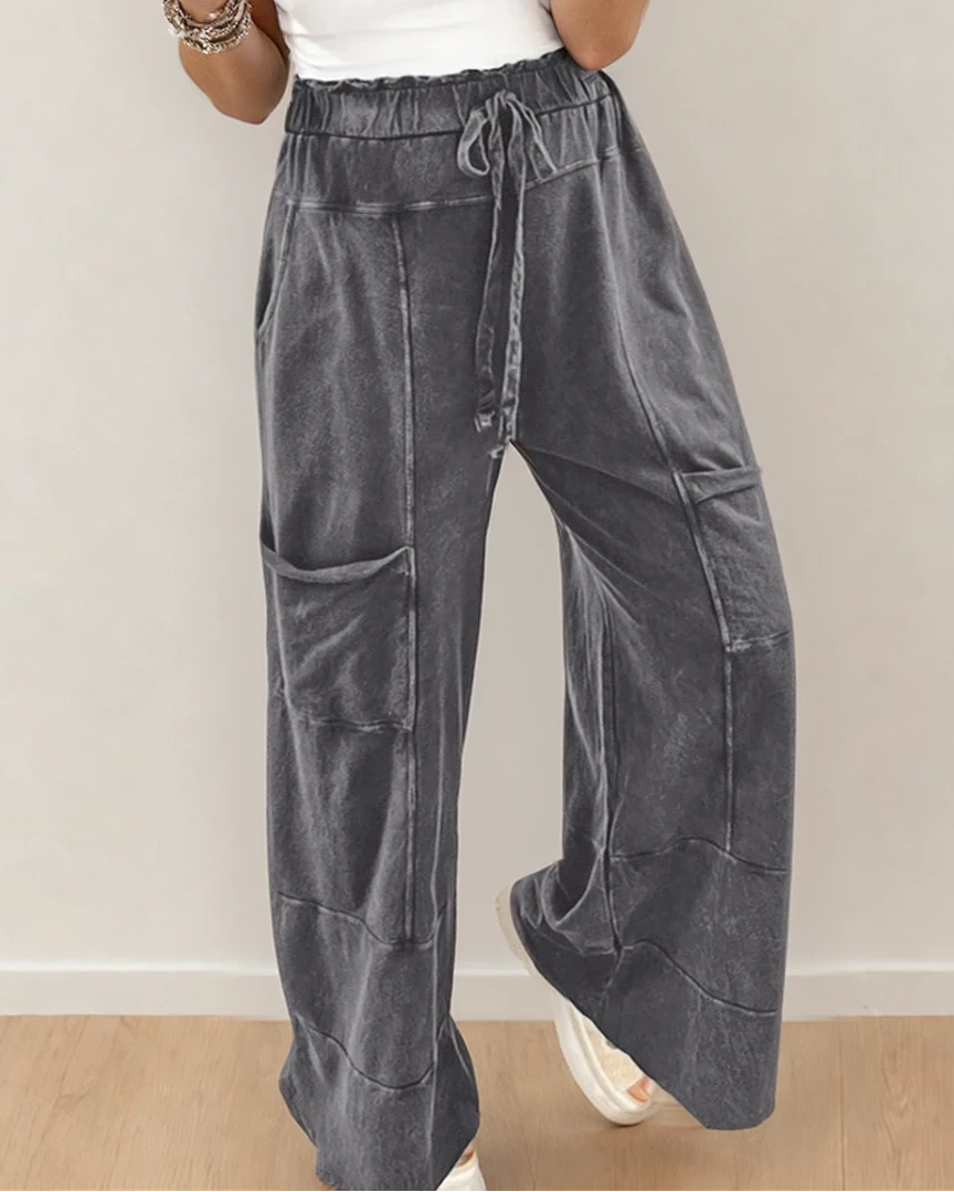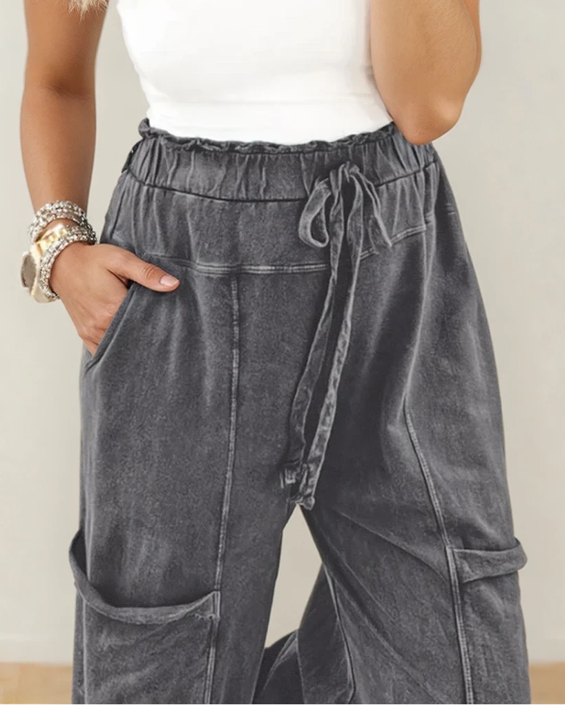 - Featuring a stylish knot detail at the waist and raw hem design, these pants add a touch of edgy flair to any outfit.