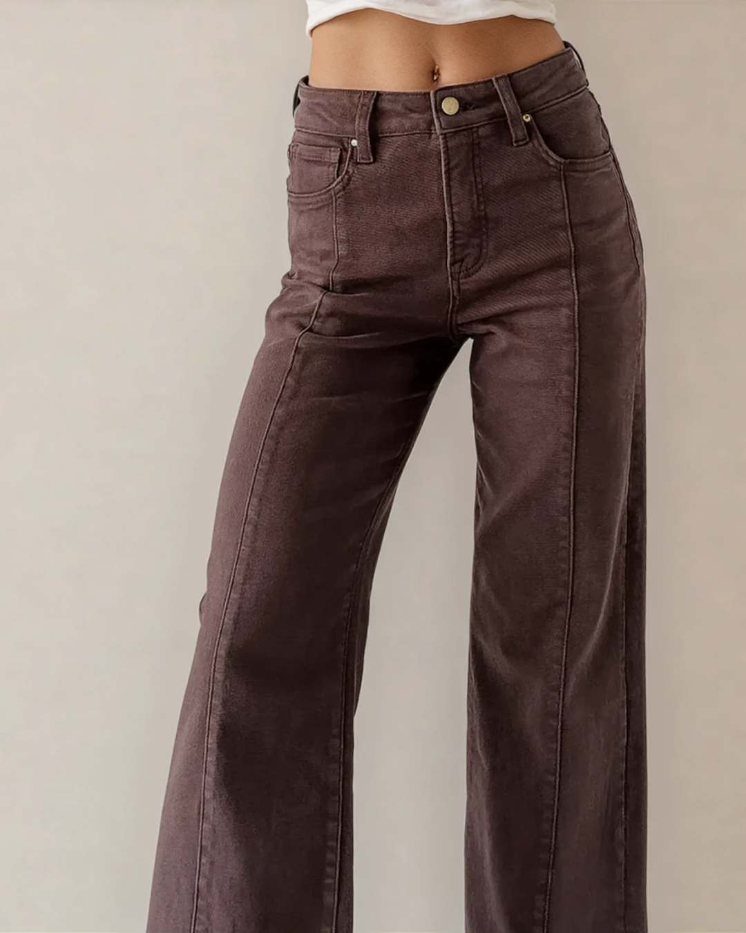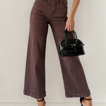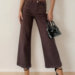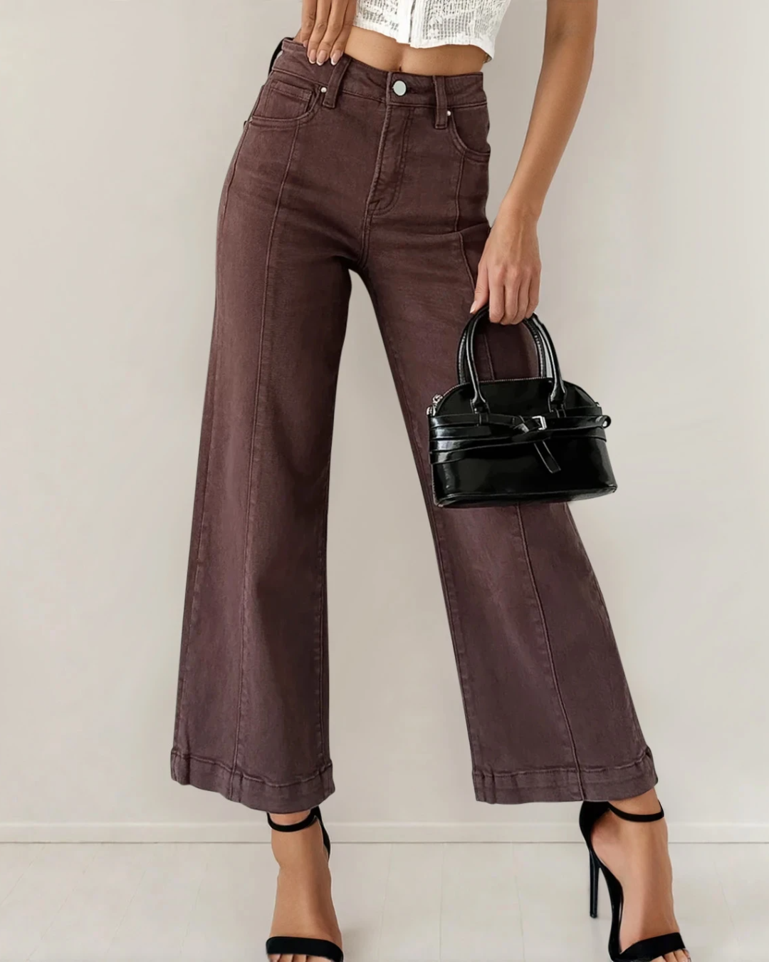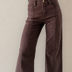 Elsie Solid Color Seamed Center Wide Leg Cropped Jeans - Red Sandalwood | Dropship