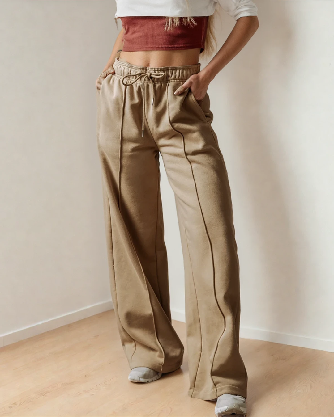 Aubrey Exposed Seam Drawstring High Waist Wide Leg Pants | Dropship