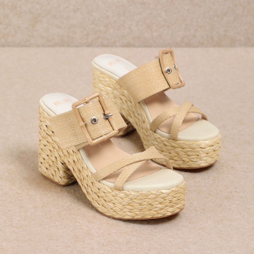 Edwina Wedges - Natural Raffia