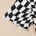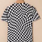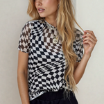 Short Sleeve Checkered Mesh Crew Neck T Shirt - Black | Dropship