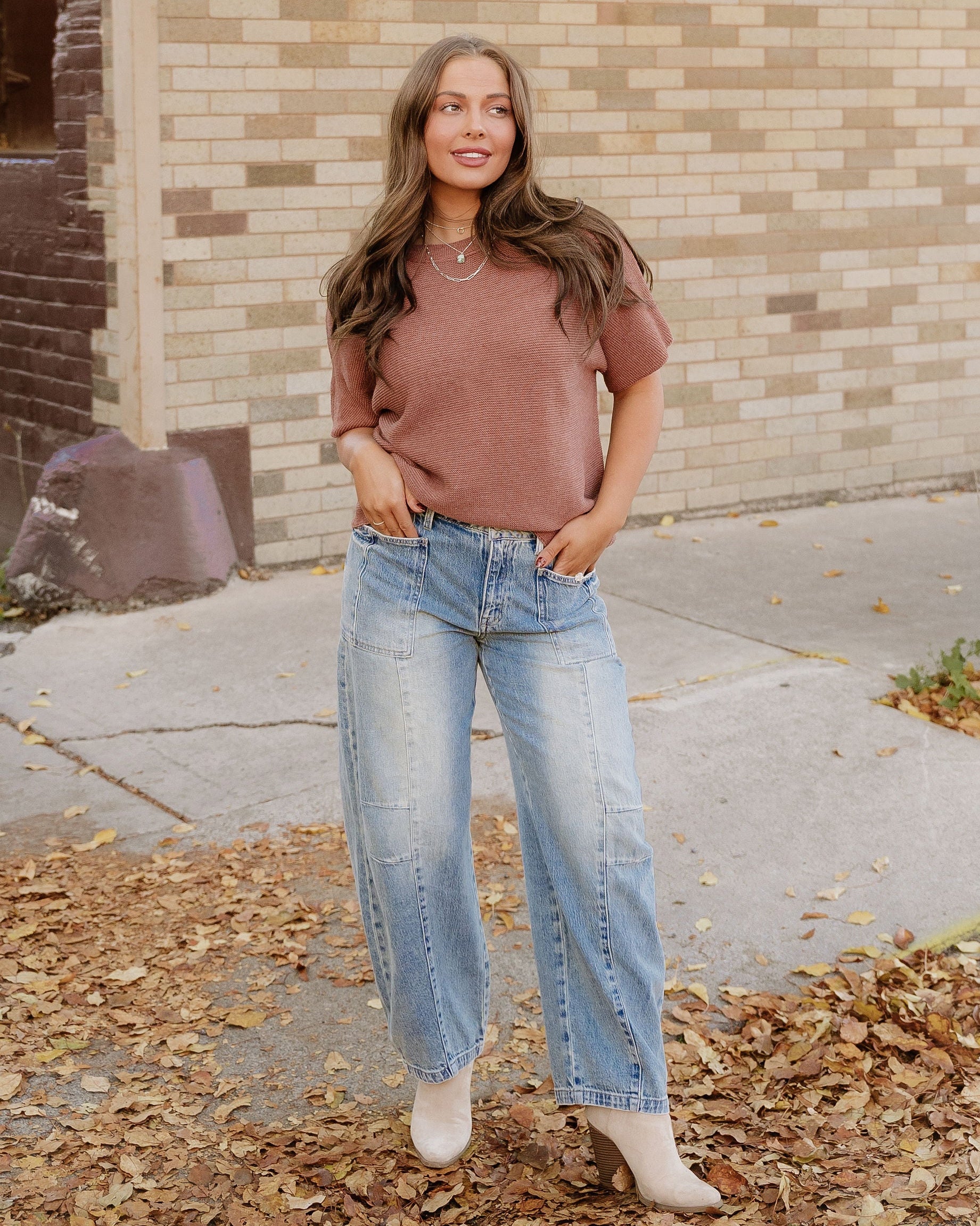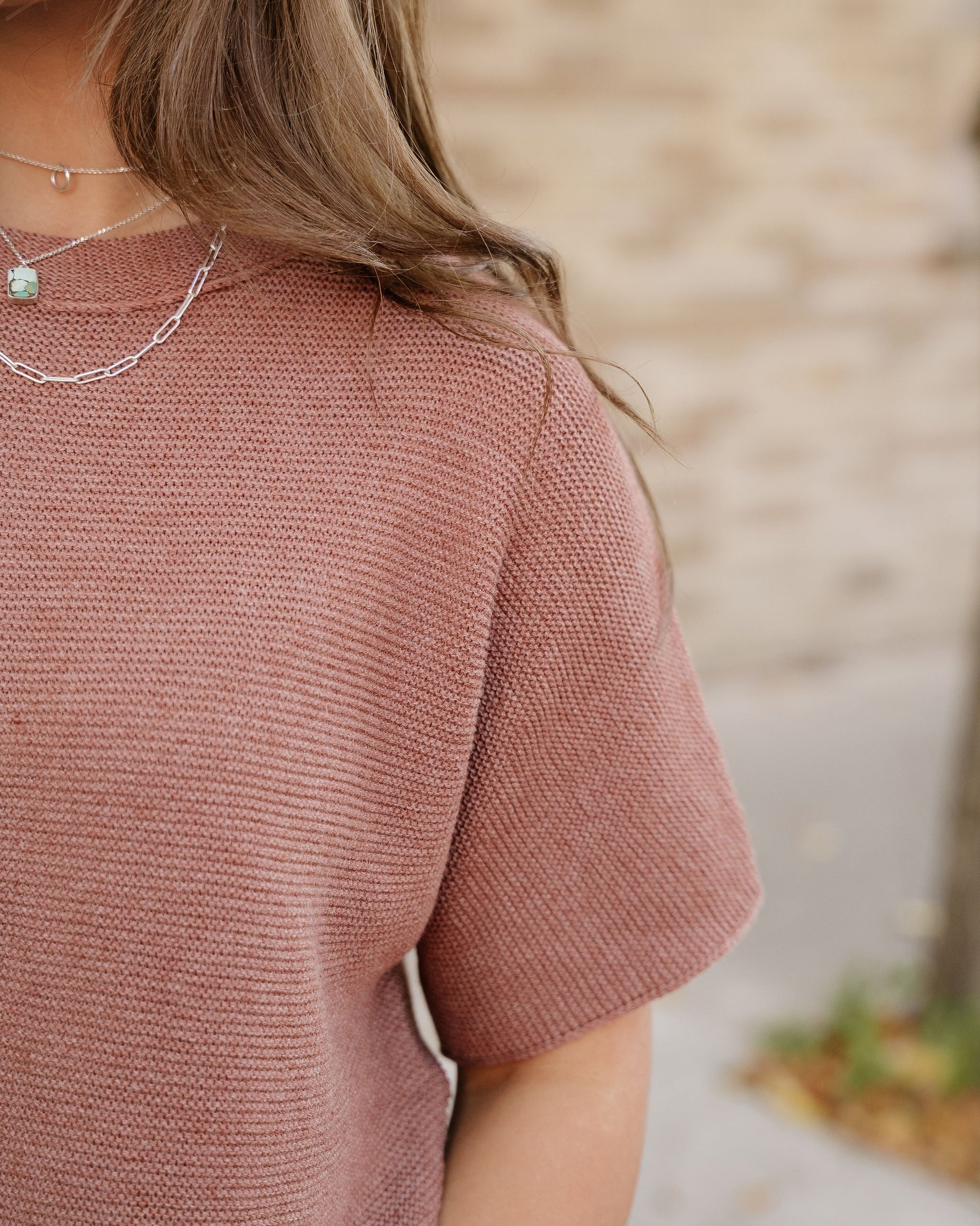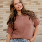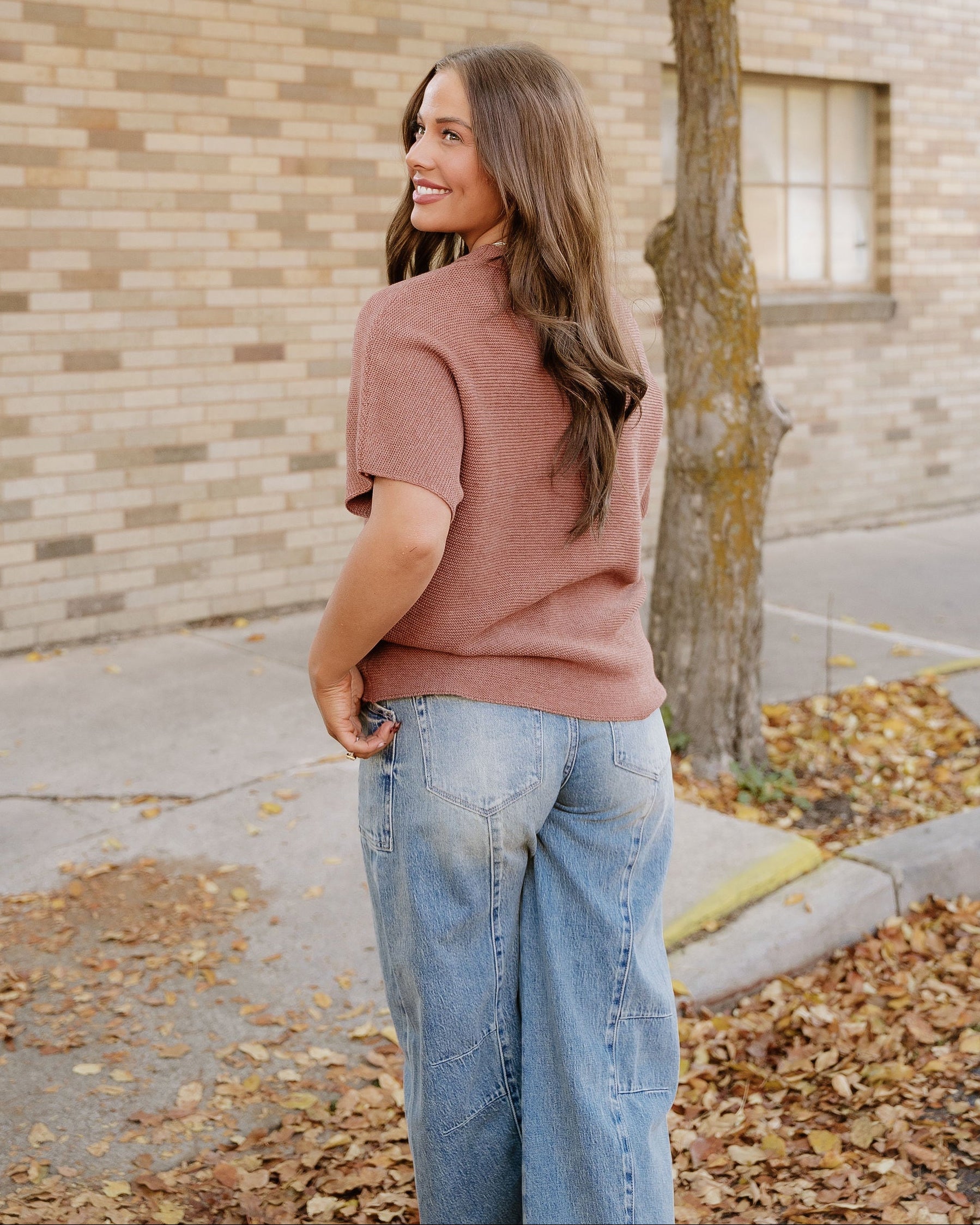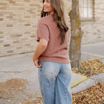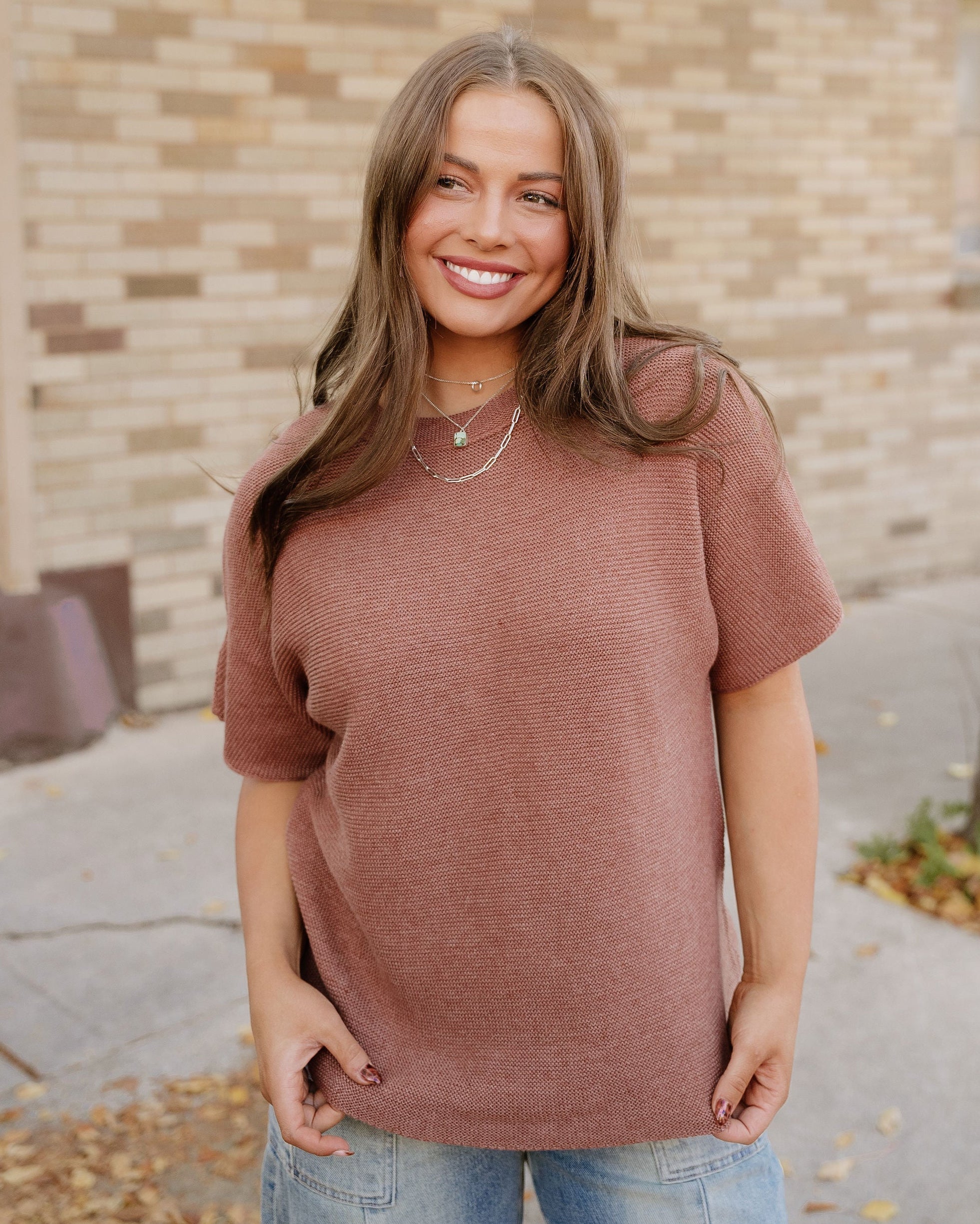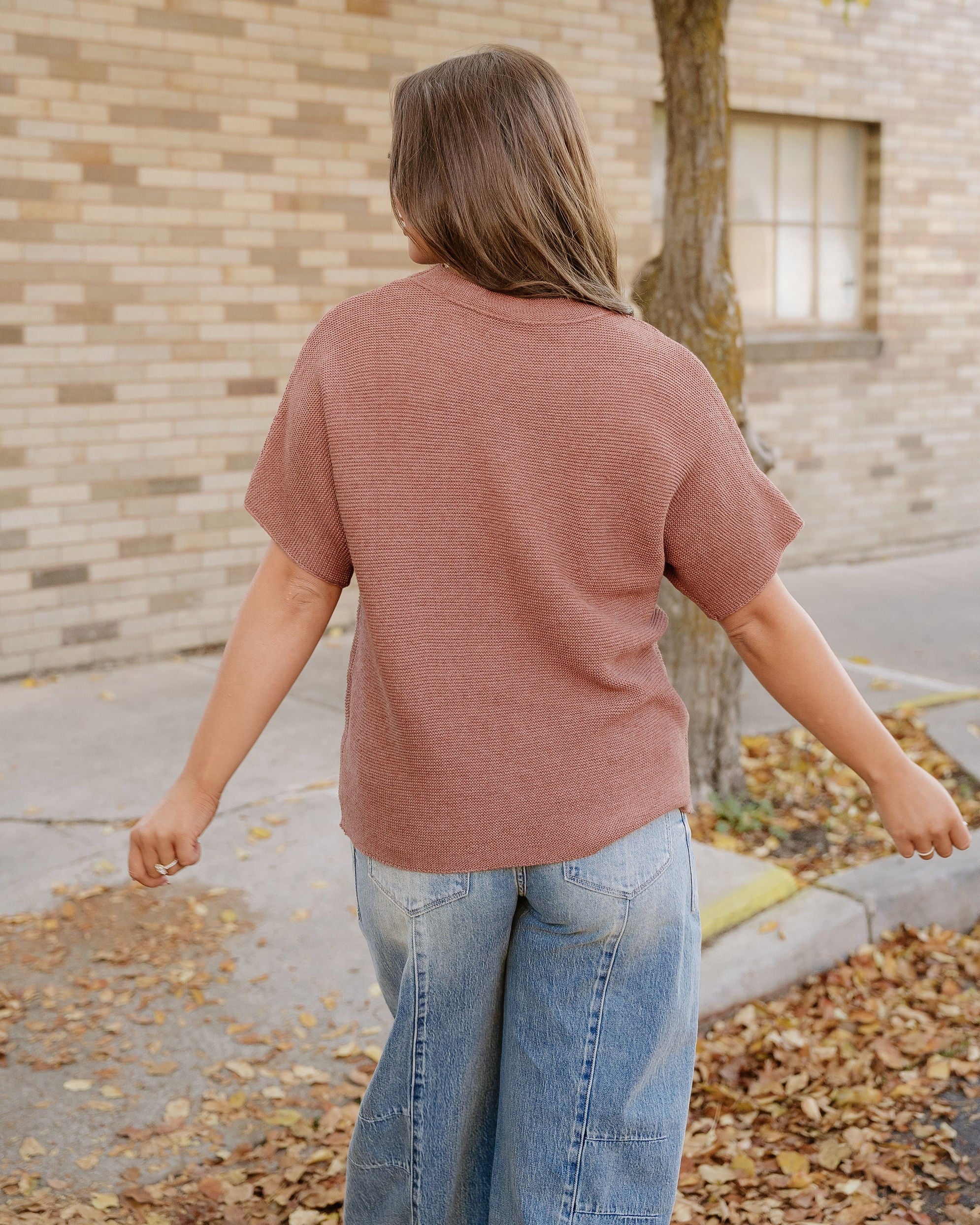 Maya Mock Neck Short Sleeve Sweater - Brown | Dropship