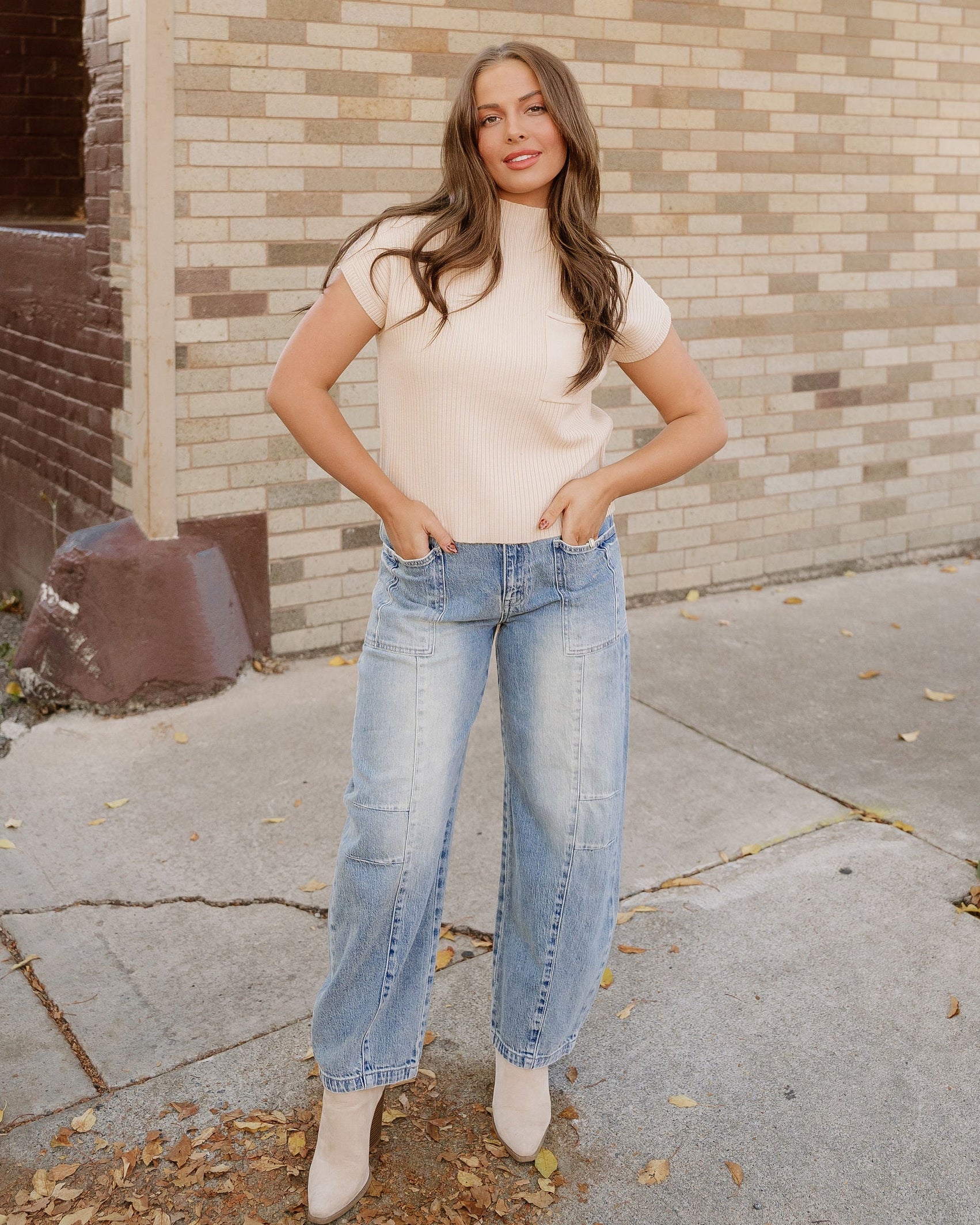 Ayla Short Sleeve Sweater - Oatmeal | Dropship