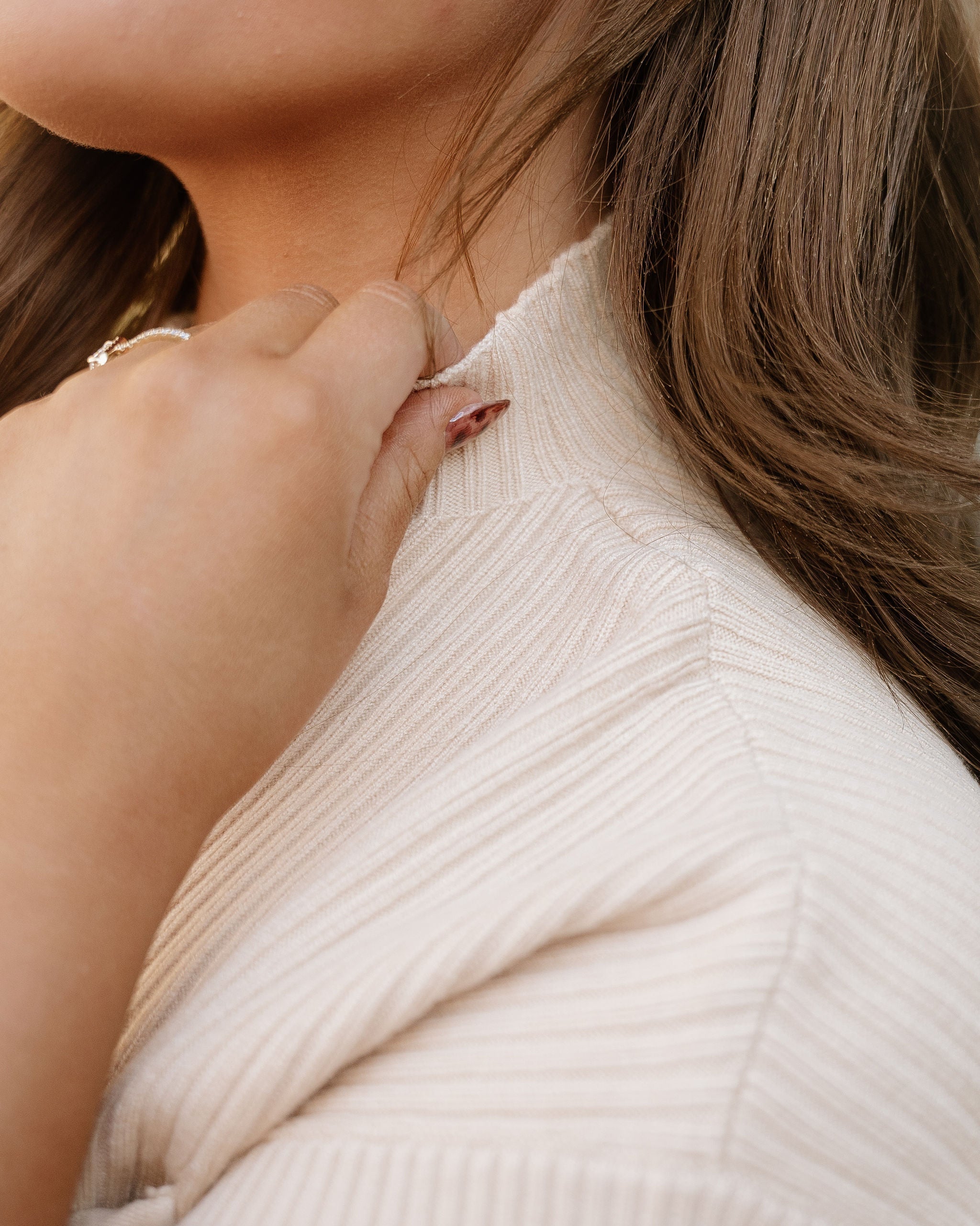 - The solid color makes it easy to pair with any bottoms, while the rib-knit texture adds a touch of sophistication to the look.
