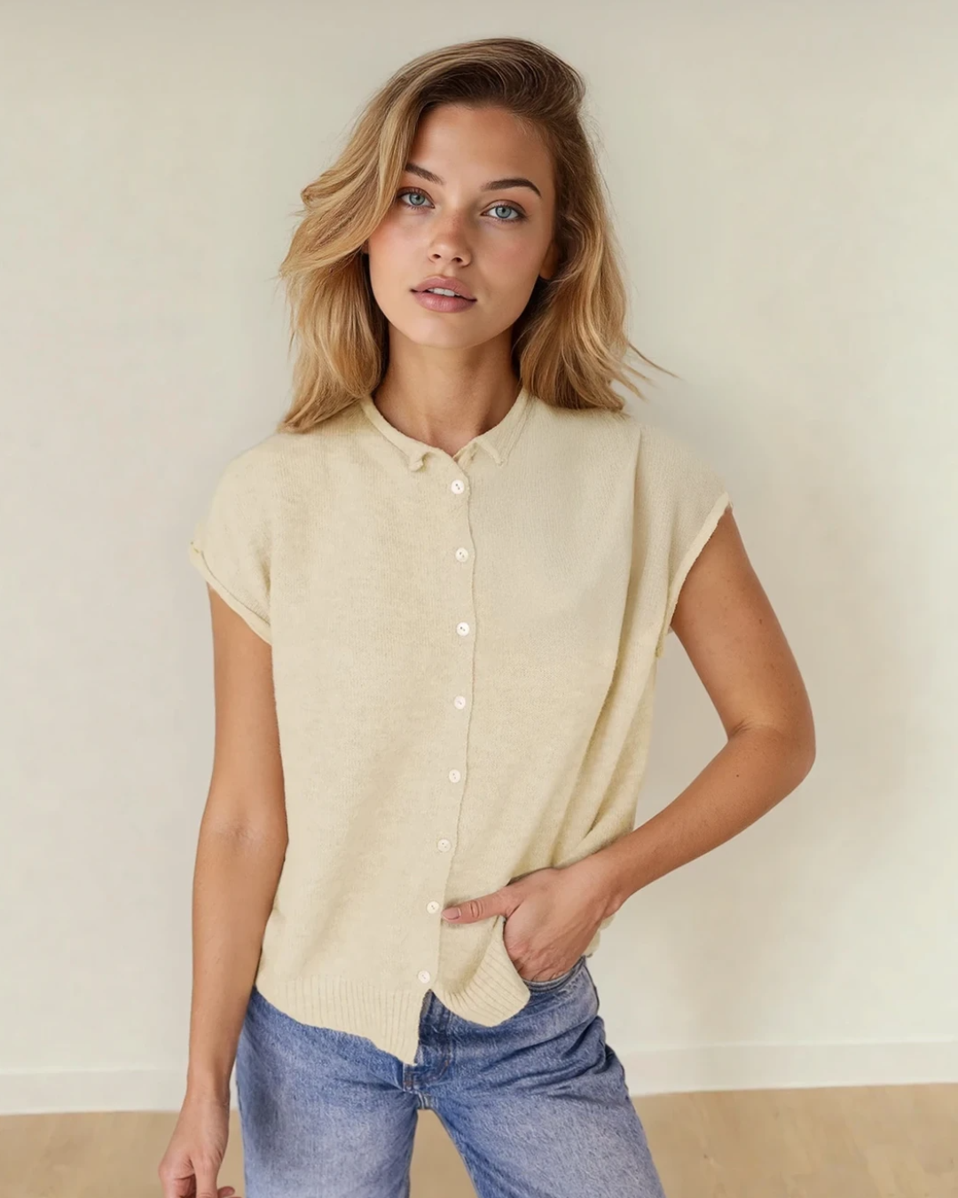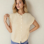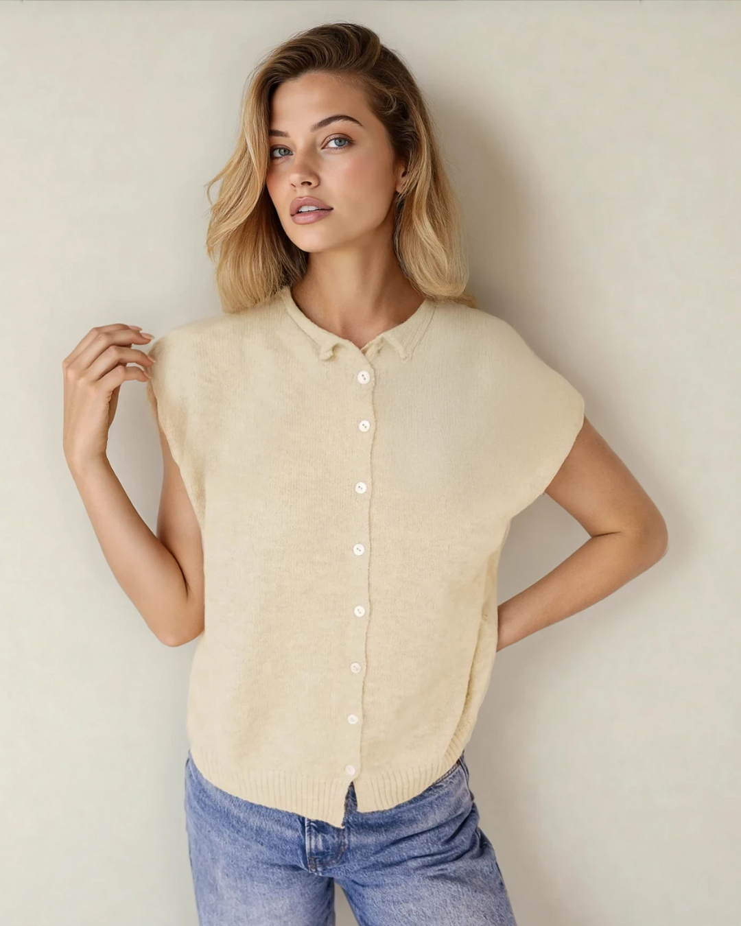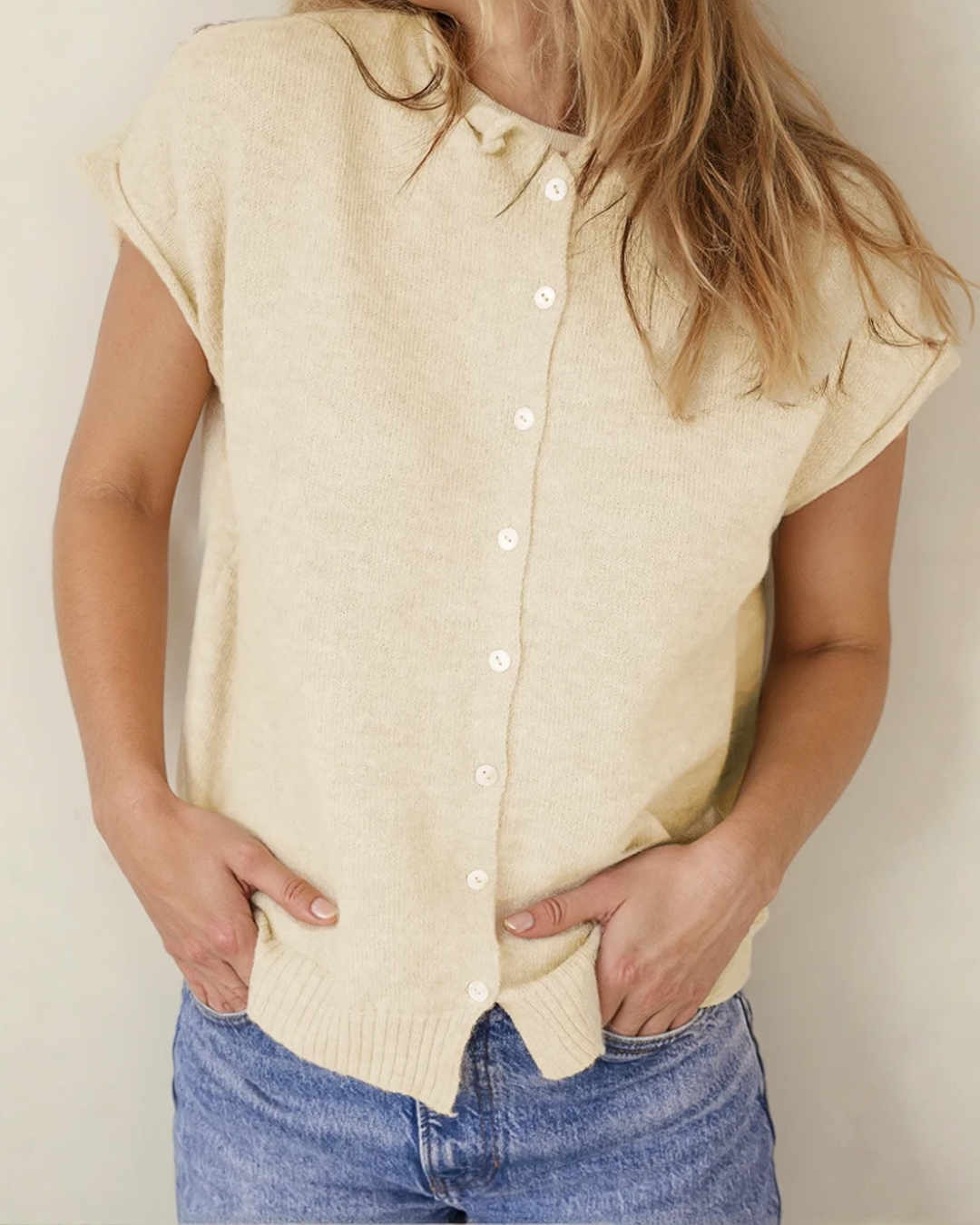 PREORDER Kiara Buttoned Front Rolled Hem Cap Sleeve Sweater Top | Dropship