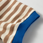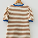 PREORDER Kimberly Stripe Short Puff Sleeve Contrast Trim Round Neck Tee - Brown | Dropship
