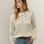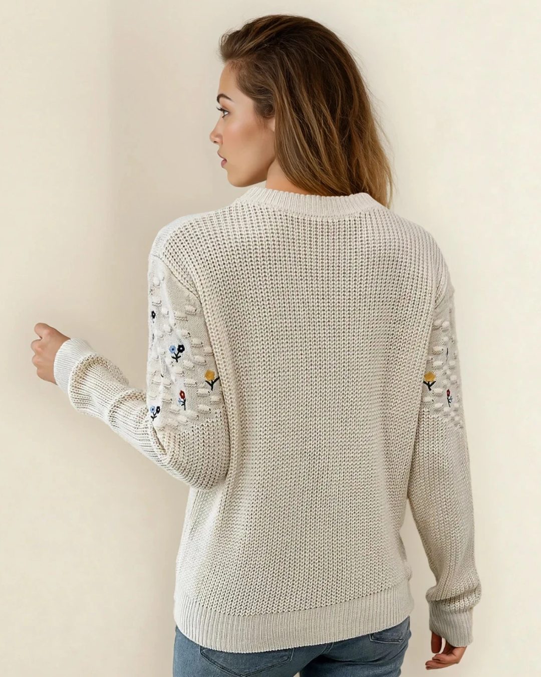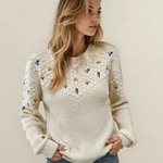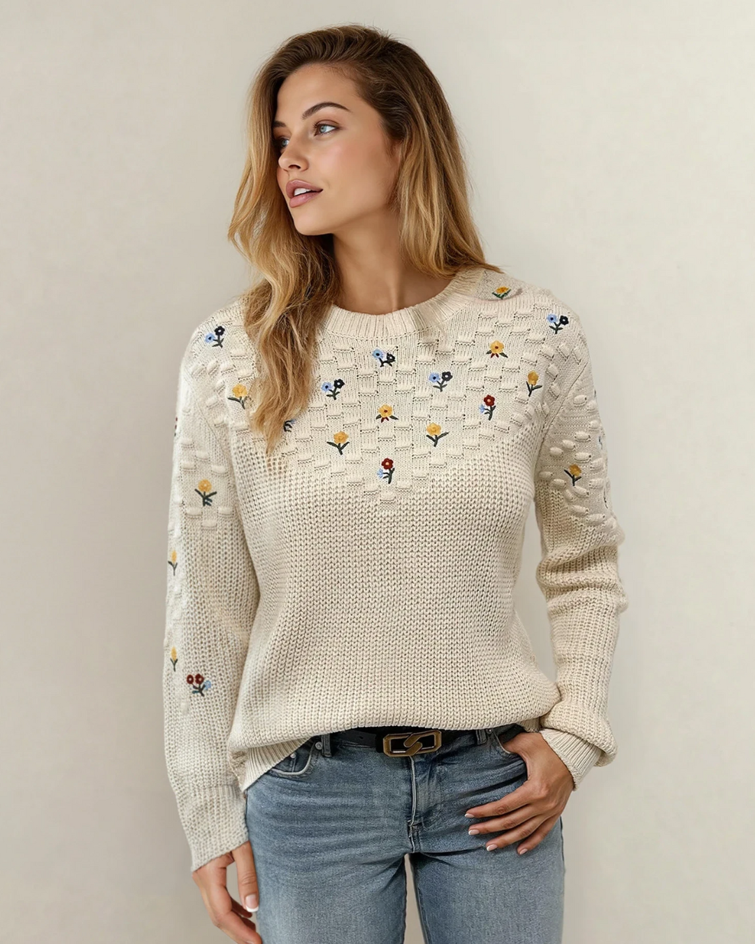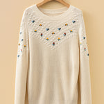 PREORDER Gemma Mixed Texture Knit Flower Embroidered Detail Casual Sweater | Dropship