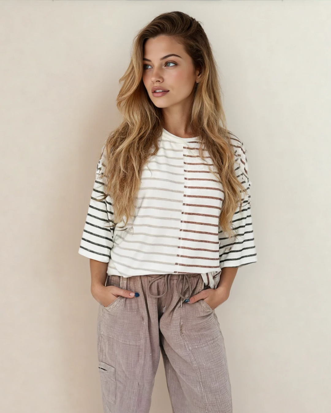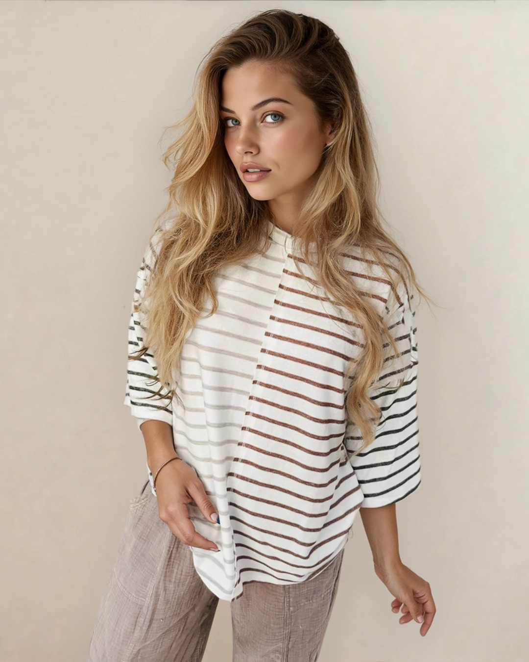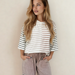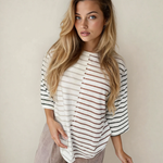 PREORDER Danna Stripe Colorblock 3/4 Sleeve Loose T Shirt | Dropship