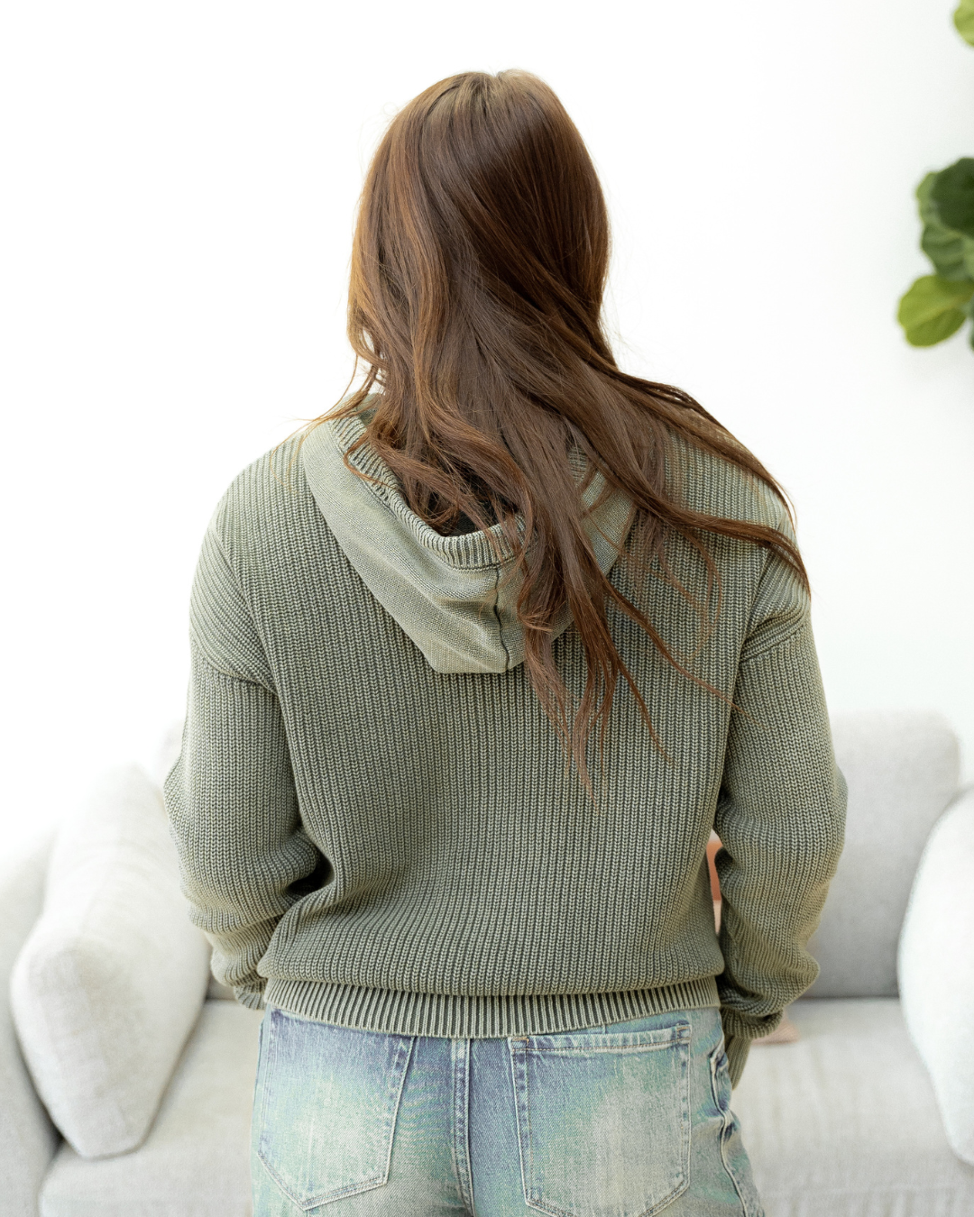 PREORDER Maeve Mineral Wash Ribbed Knit Drawstring Hooded Sweater