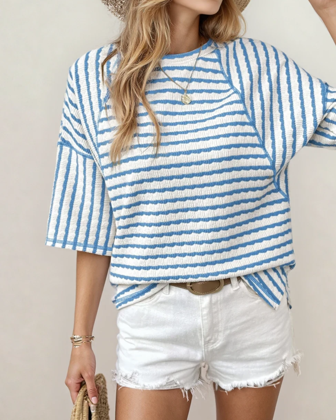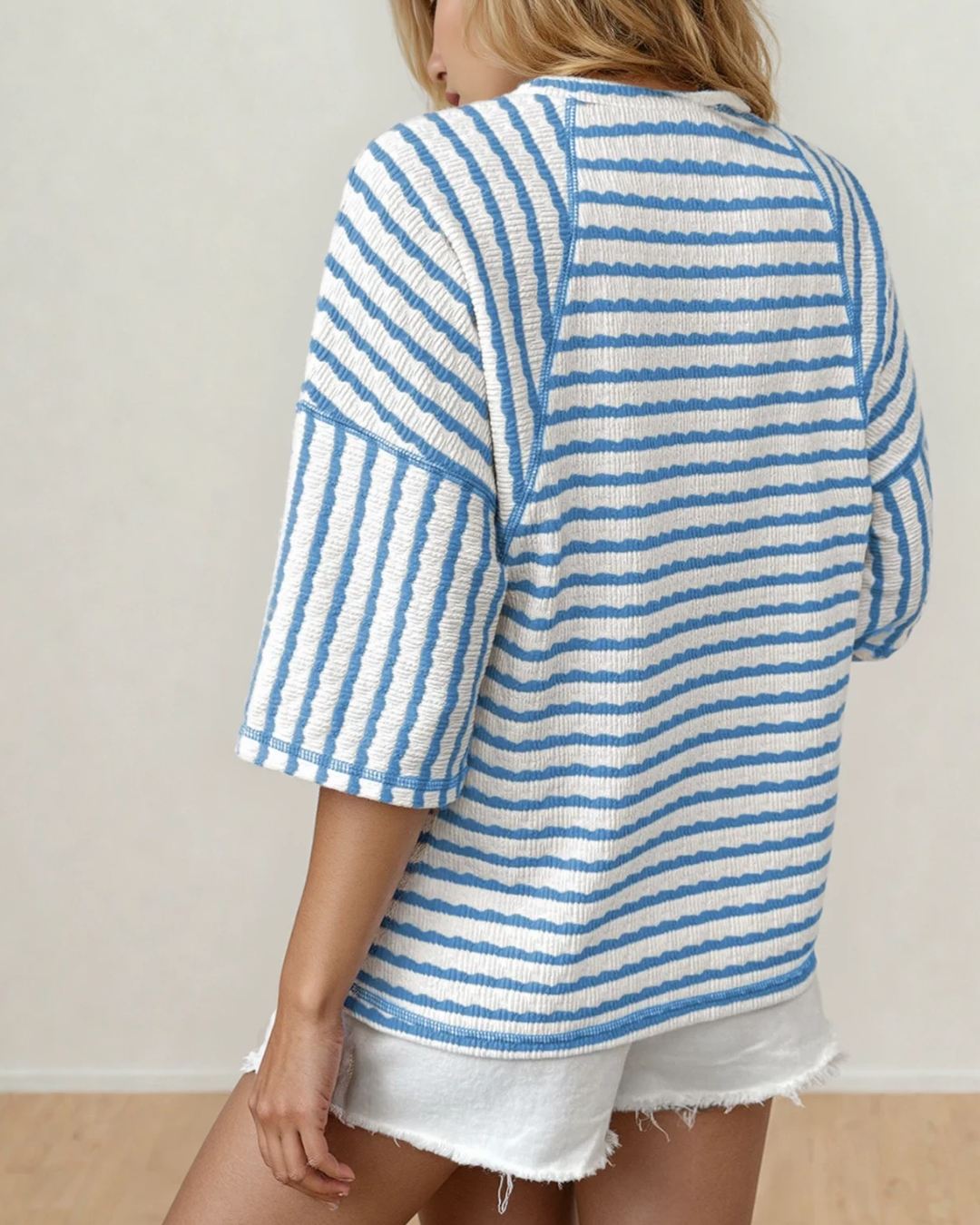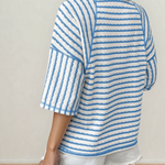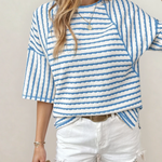 PREORDER - Noelle Textured Knit Split Hem Half Sleeve Loose Top - Sky Blue | Dropship