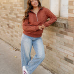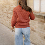 - The textured finish adds visual interest to the solid color, elevating the overall aesthetic of this trendy sweatshirt.