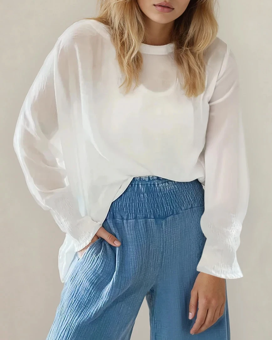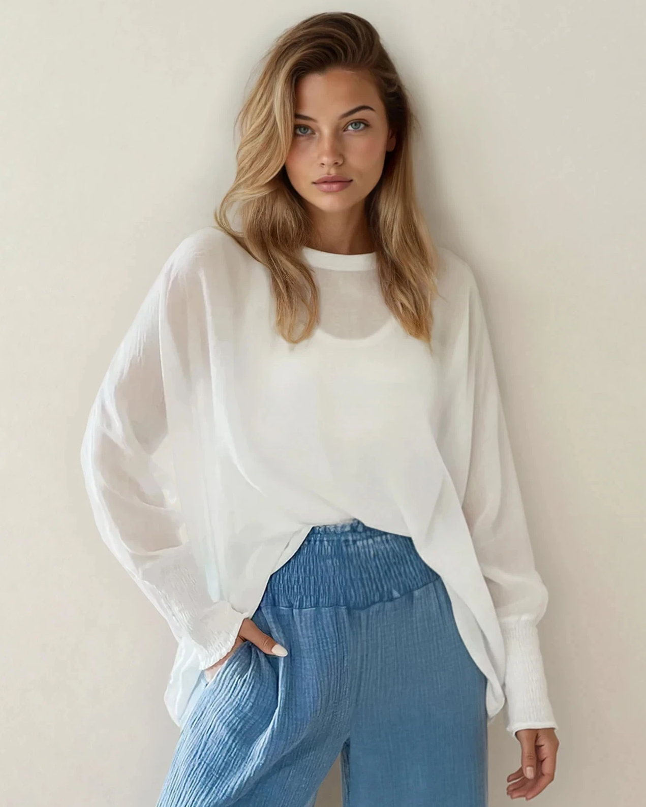 PREORDER Marley Smocked Cuffs Semi Sheer Long Sleeve Dolman Blouse | Dropship