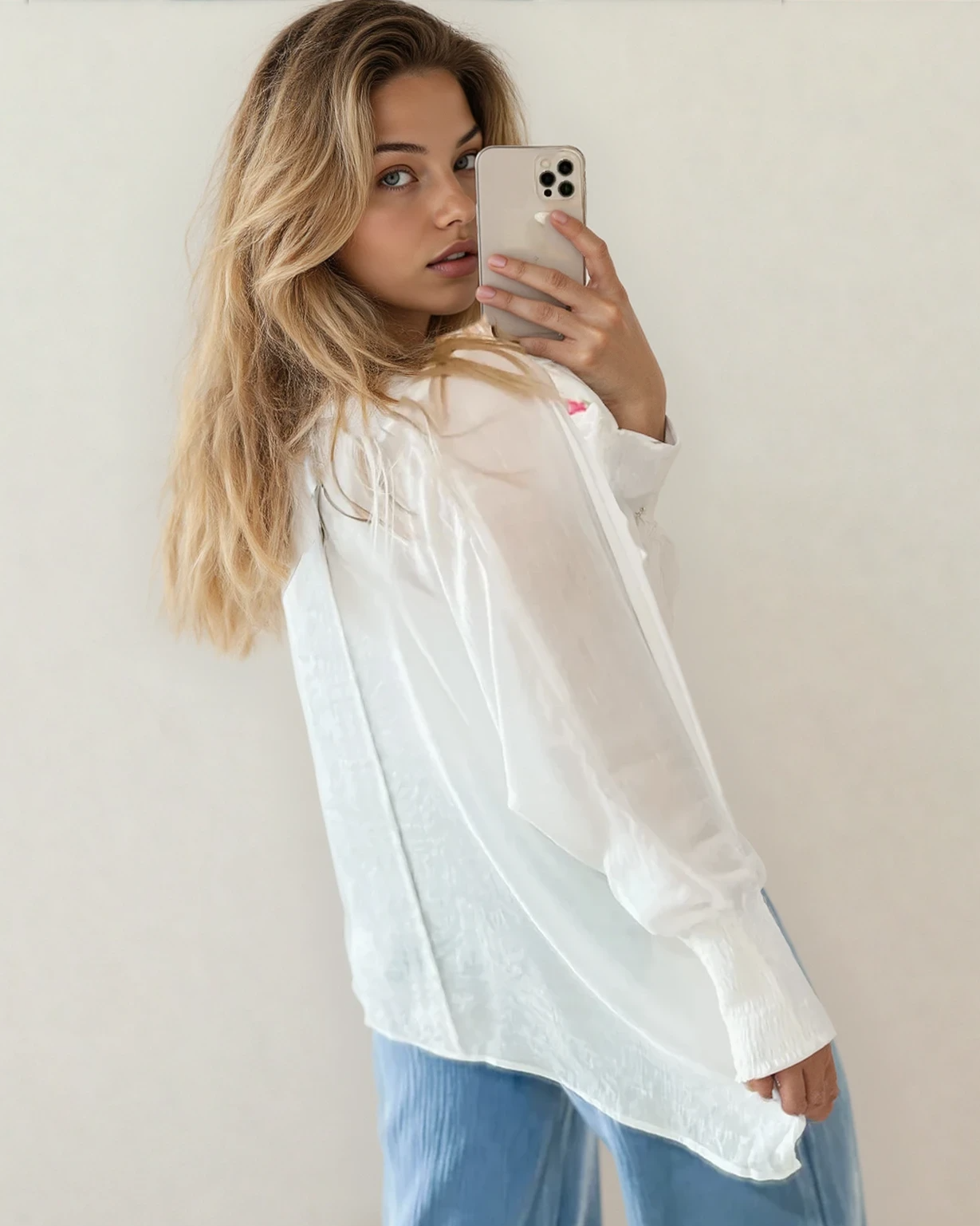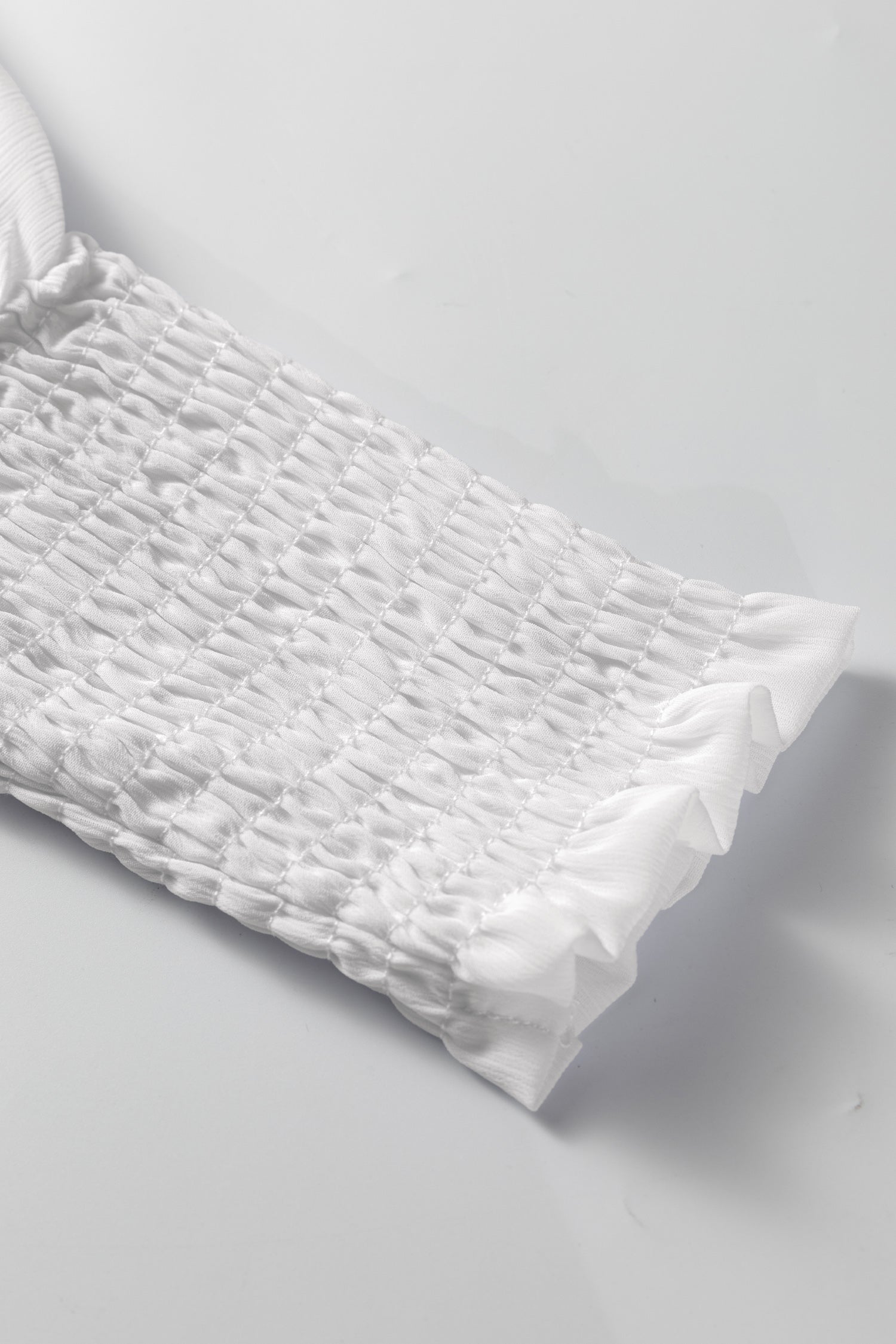 Smocked cuffs create subtle volume and stylish wrist detail.