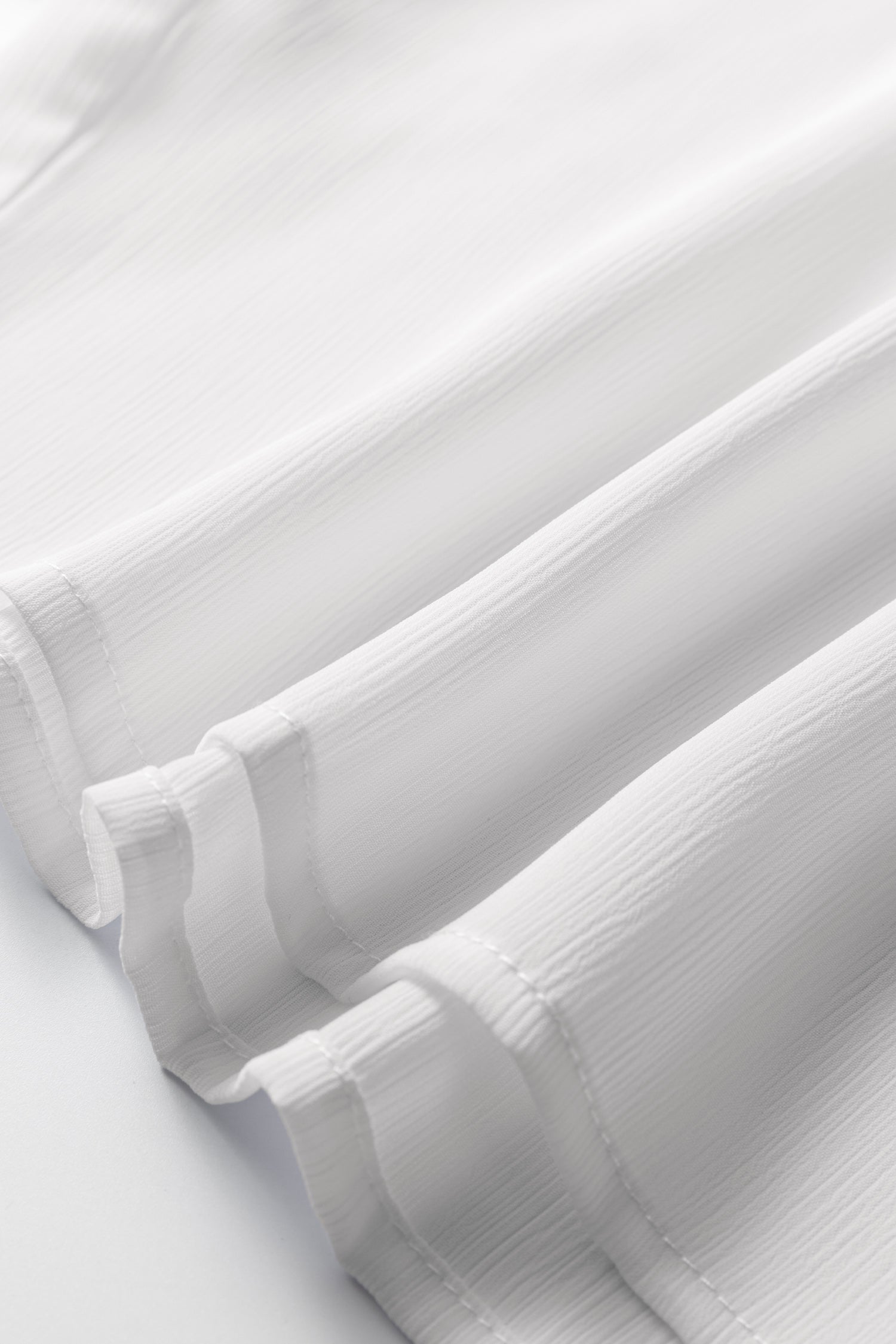 - Elegant semi-sheer fabric adds a delicate, feminine touch.