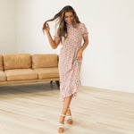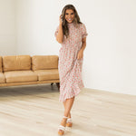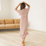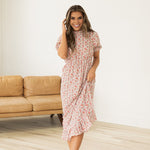 This gorgeous floral dress is perfect for Spring! Our Amelia dress has adorable, subtle ruffles on the neck, sleeve, and hem.