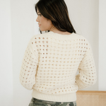 - This soft knit cardigan with a unique hollowed pattern for a chic and contemporary look.