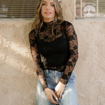 - Elegant mock neck lace top with intricate floral mesh detailing for a sophisticated look that effortlessly transitions from day to night.