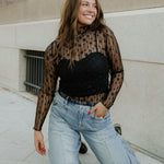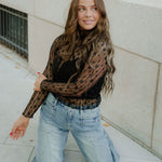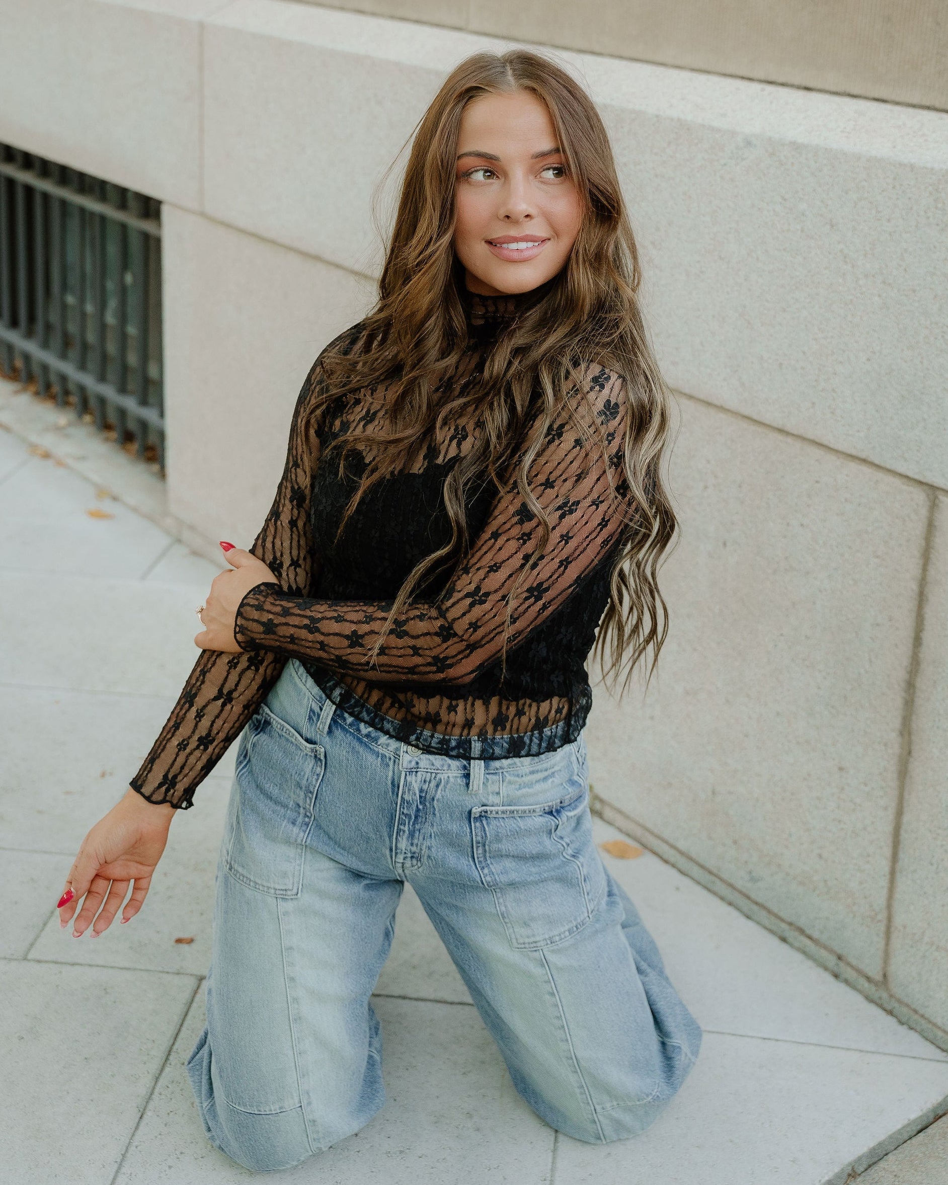 Claire Floral Lace Long Sleeve Slim Fit Top - Black | Dropship