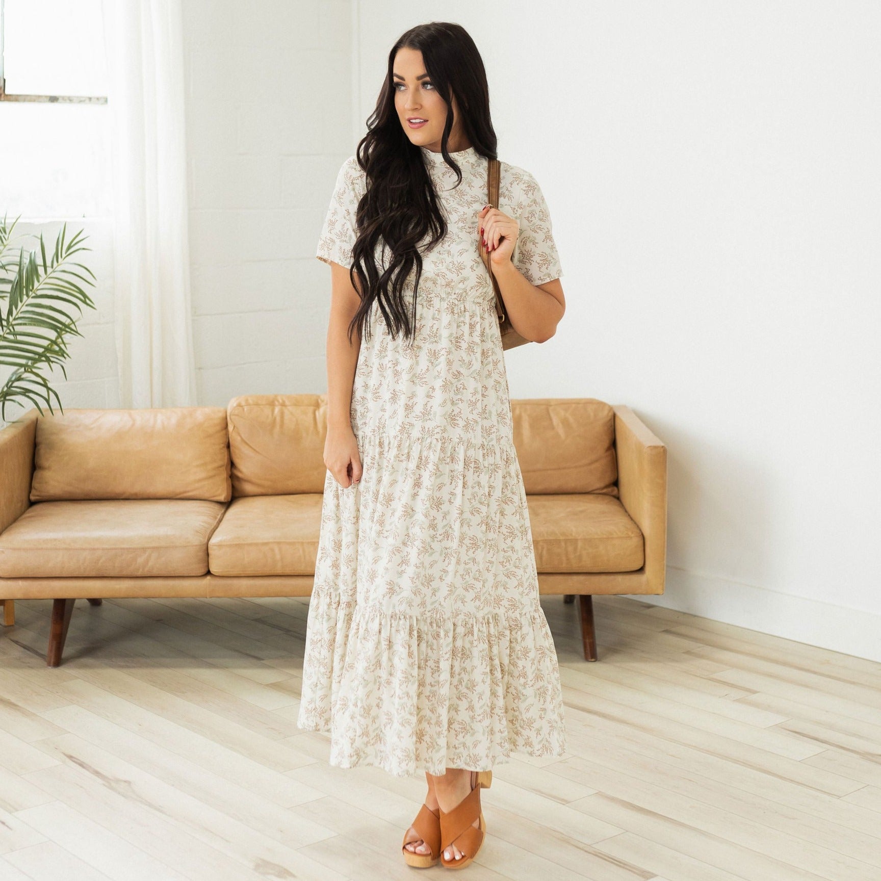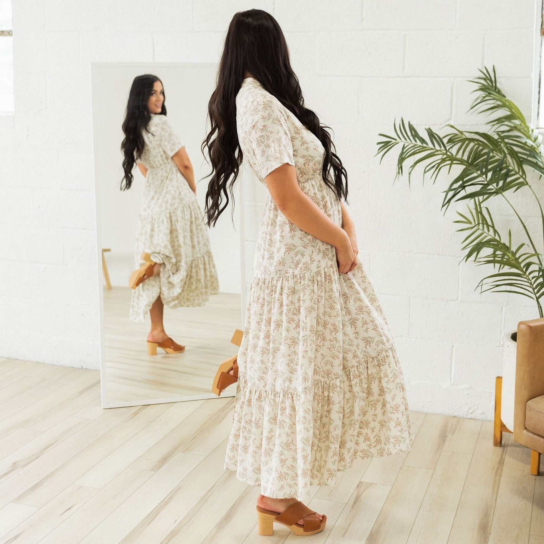 Welcome the season in style with this beautiful, cream floral Gigi Dress. This flowy, ankle-length dress is perfect for every occasion, from a casual Sunday brunch to a summer wedding. This is sure to make heads turn. Shop now and let this wardrobe essential enhance your style.