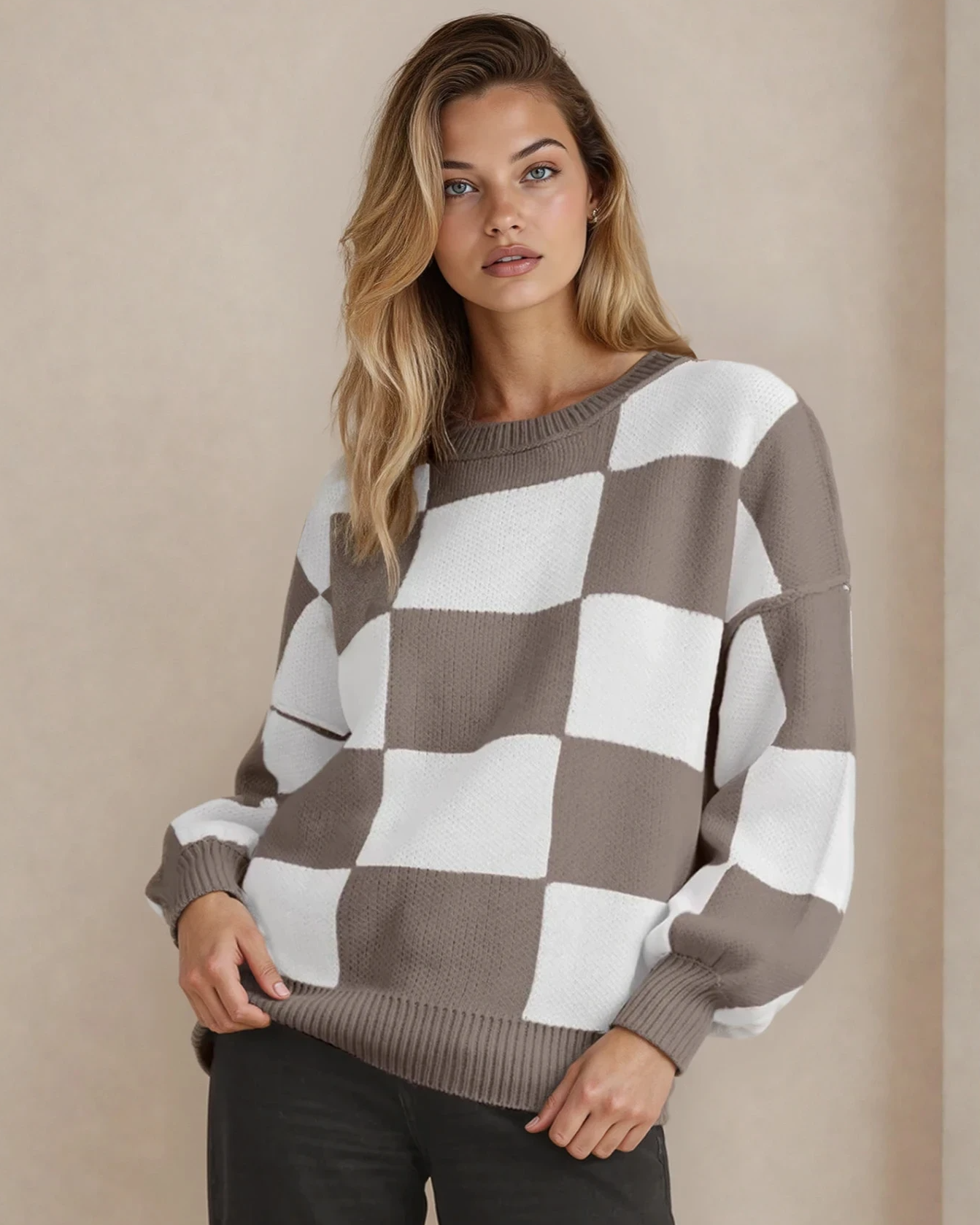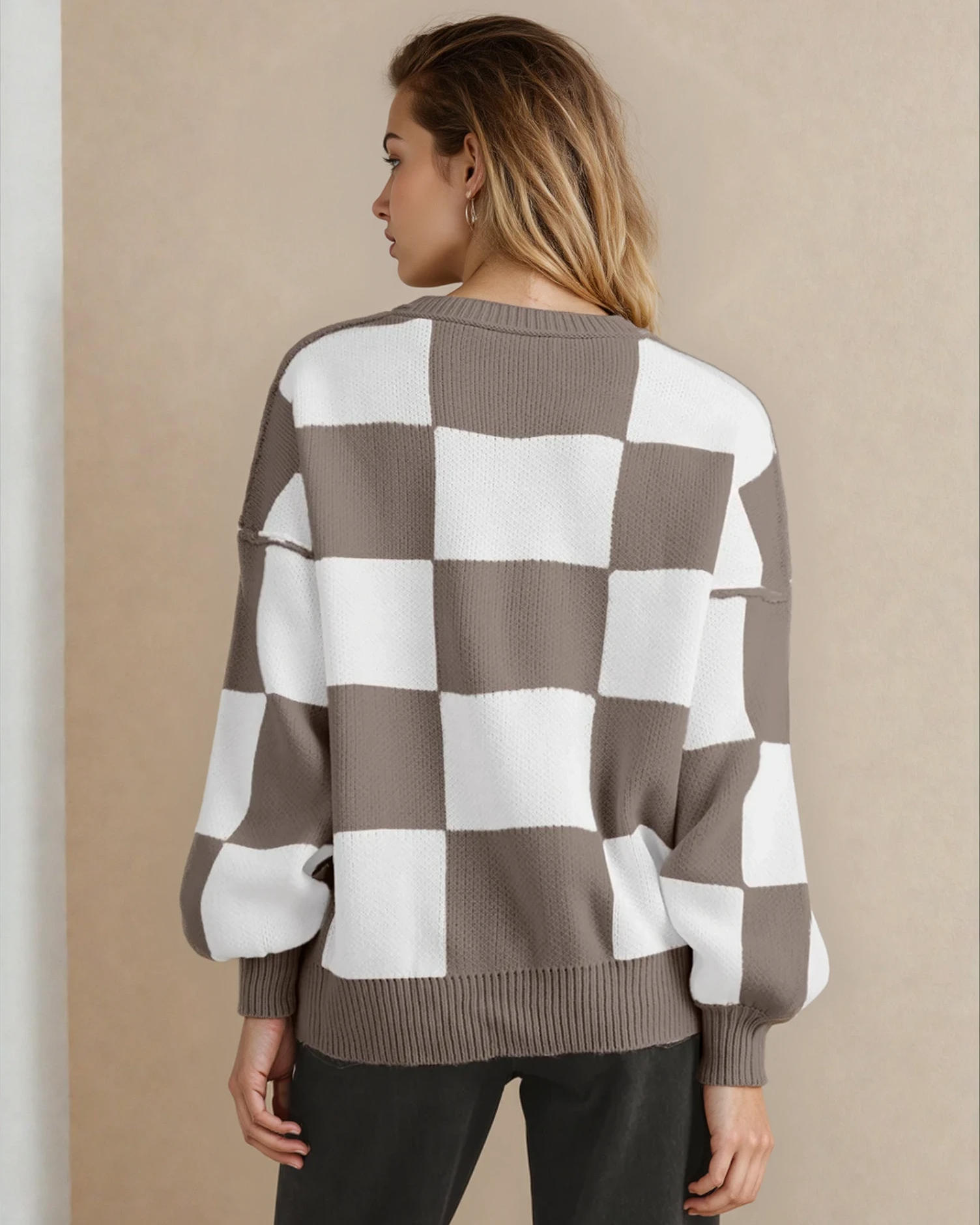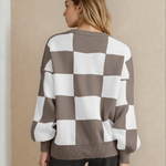 Checkered Crew Neck Sweater - Brown | Dropship