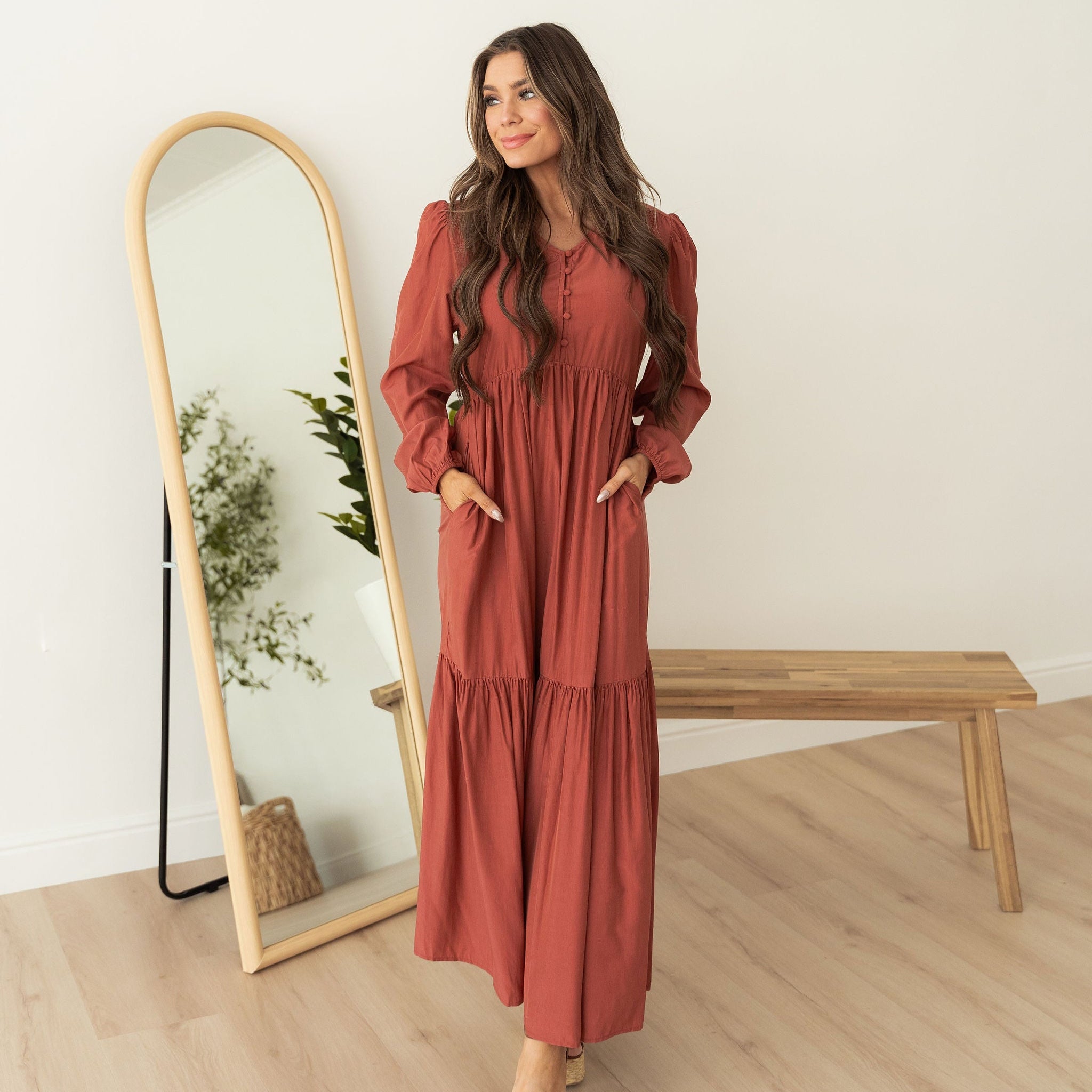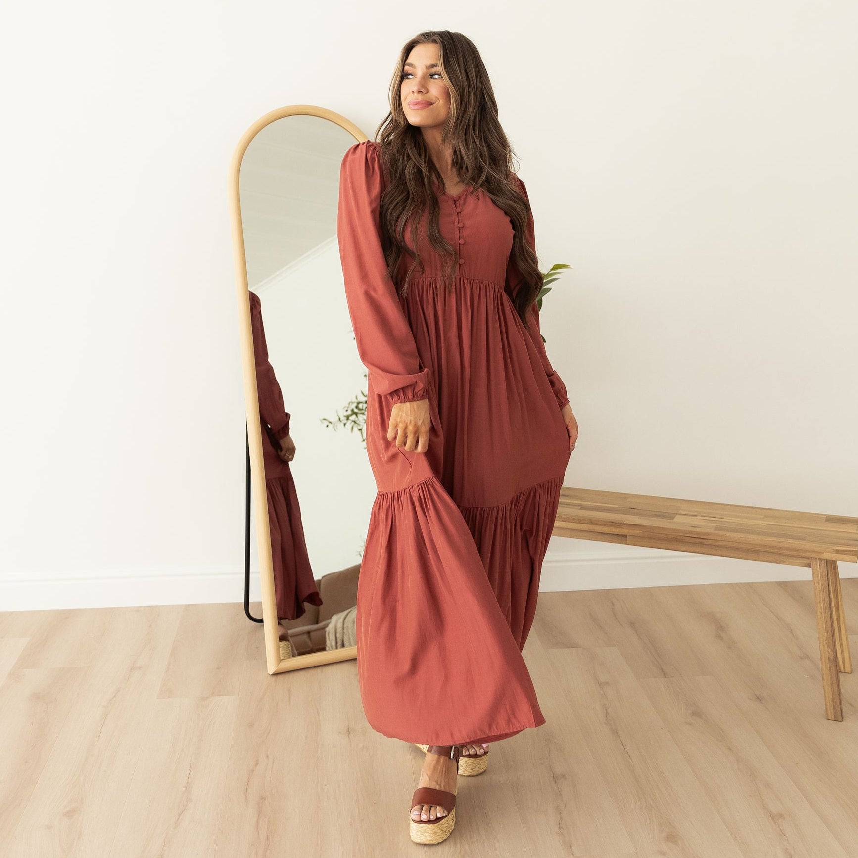 Introducing the Ellis Dress, perfect for any season and all occasions. This light and airy dress is designed to flow elegantly around your body. The long sleeve design offers a flattering fit while the ankle-length skirt adds a touch of sophistication. This dress is perfect for an all-year-round look that will make you look and feel beautiful.