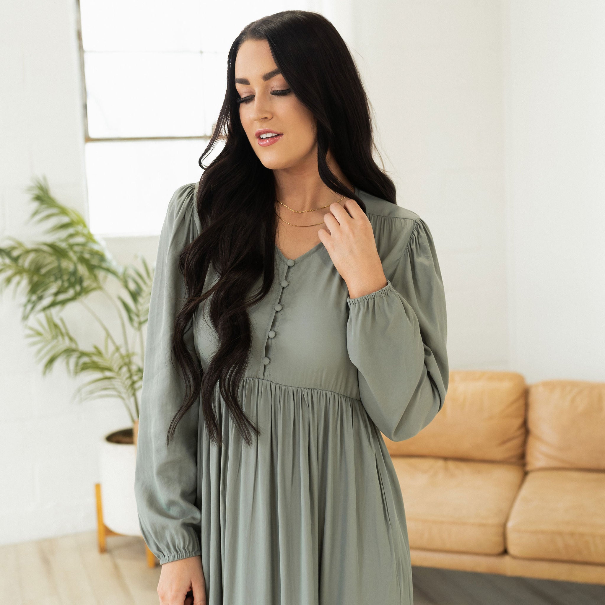 Introducing the Ellis Dress, perfect for any season and all occasions. This light and airy dress is designed to flow elegantly around your body. The long sleeve design offers a flattering fit while the ankle-length skirt adds a touch of sophistication. This dress is perfect for an all-year-round look that will make you look and feel beautiful.