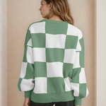 - This pullover sweater stands out with its plaid design and trendy bishop sleeves, offering both comfort and style for the colder months.