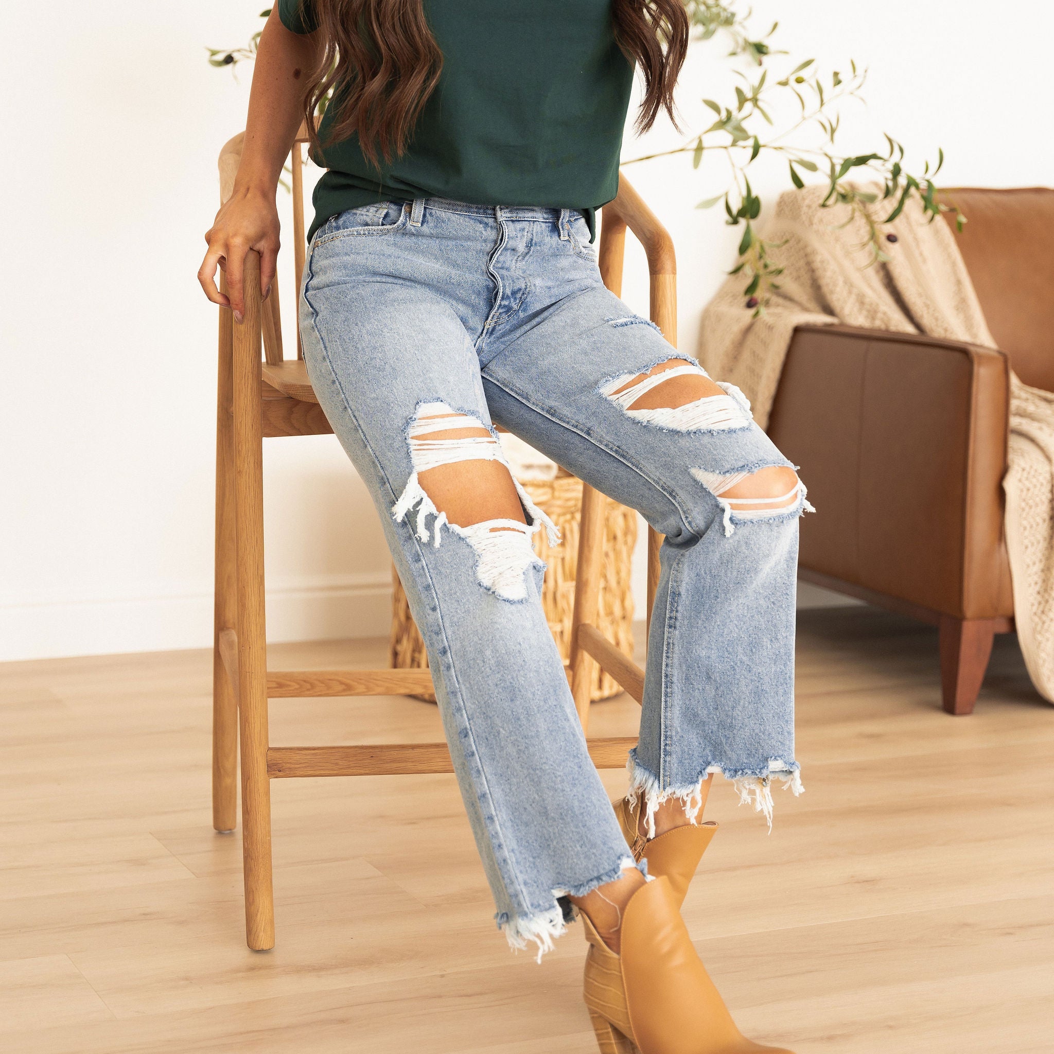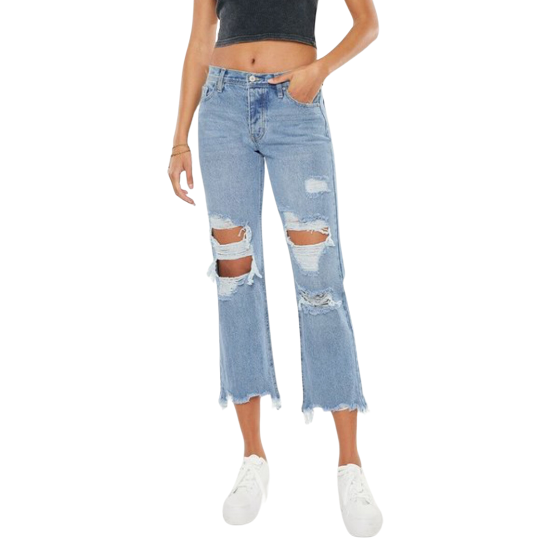 HIGH RISE RELAXED FIT JEANS WITH DISTRESSED
