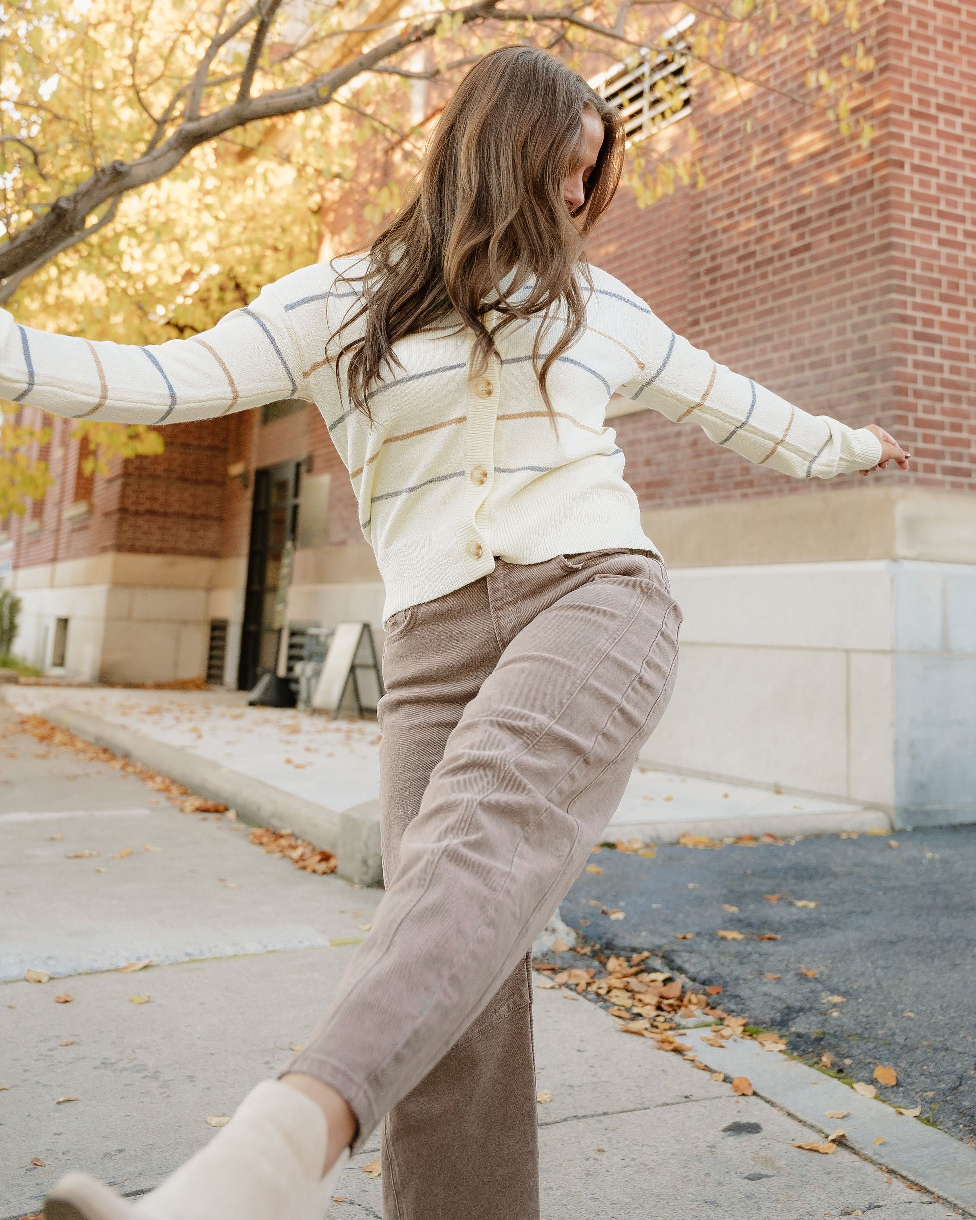 - Elevate casual wardrobe with this striped cardigan, featuring a chic drop shoulder design for a relaxed yet stylish look.