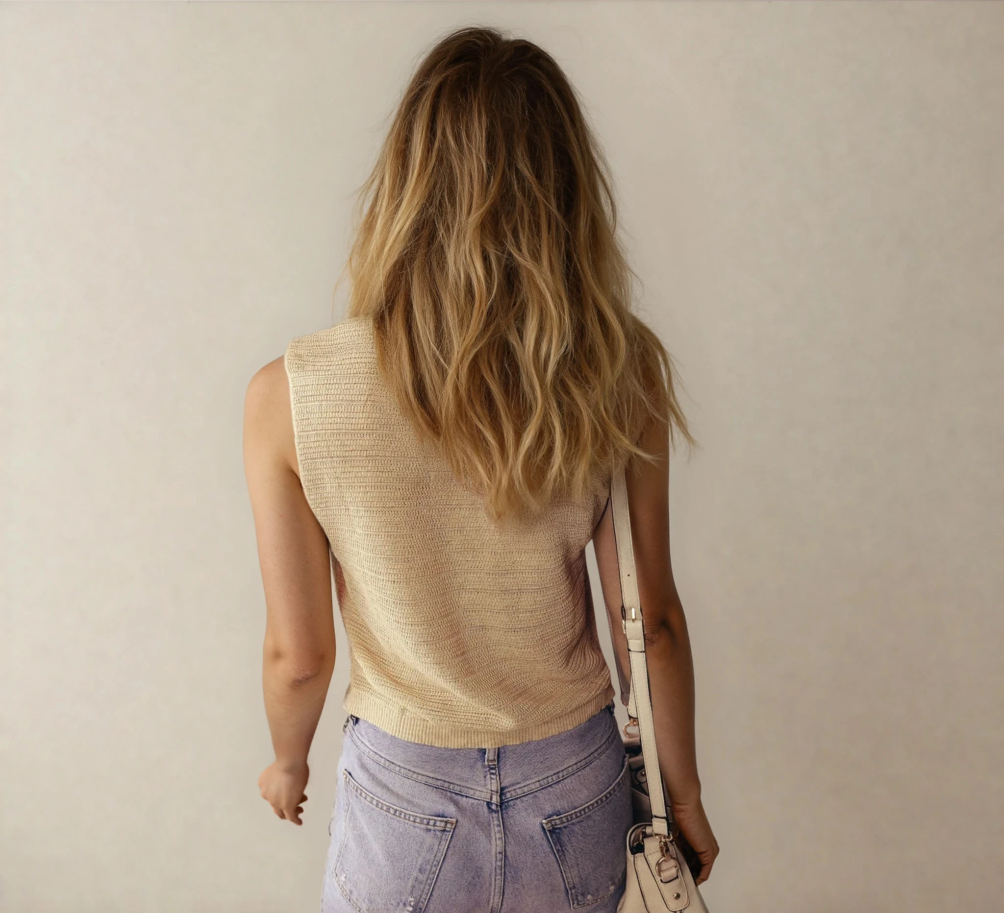 Soft knit fabric keeps this hollow out vest comfy for all-day wear.