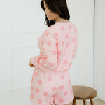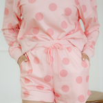 Kaylee Polka Dot Print Drop Shoulder Pullover Drawstring Shorts Set - Pink