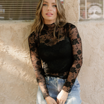 Sheer Floral Lace Top - Black