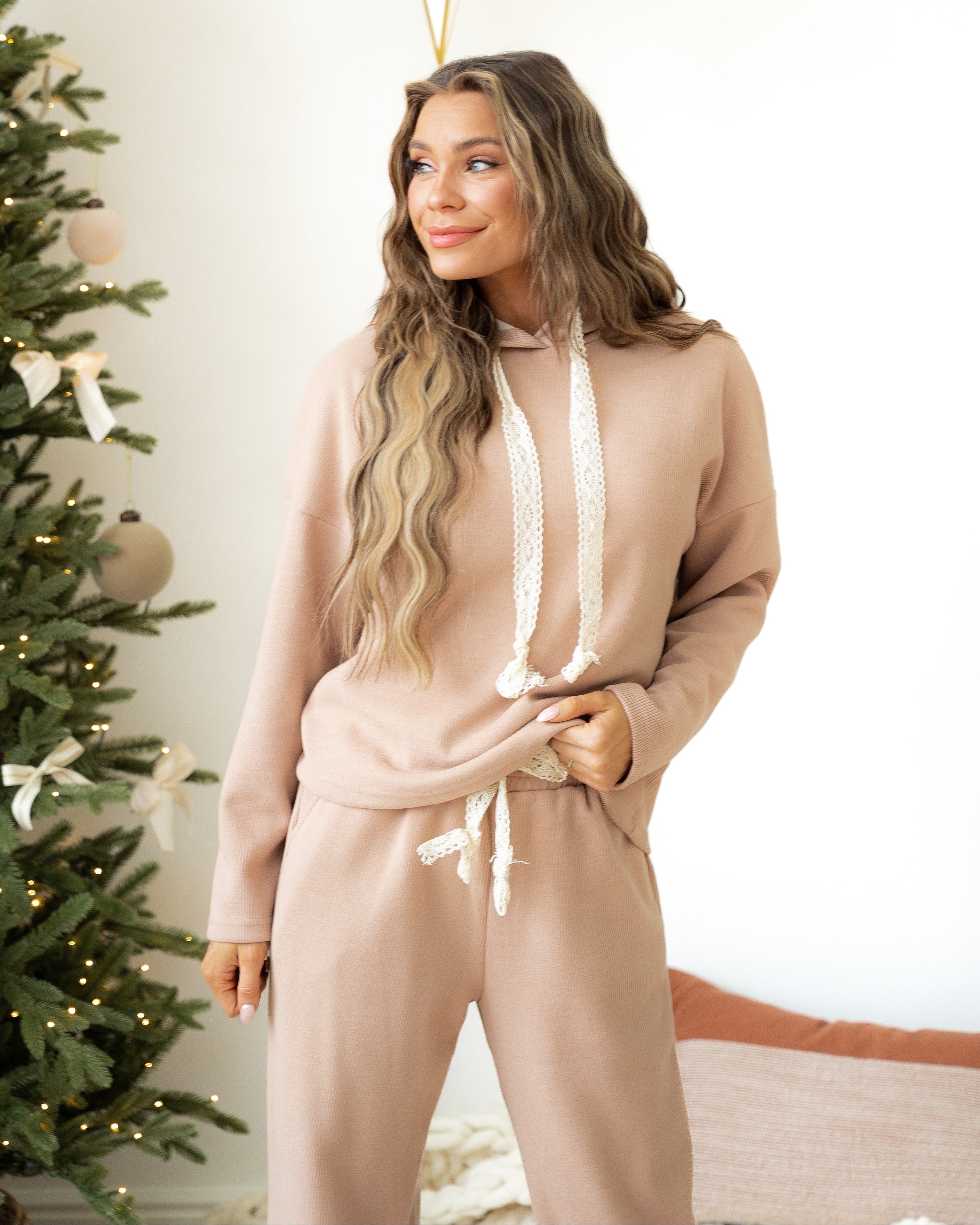 Everly Drawstring Pullover Hoodie and High Waist Pants Set| Dropship