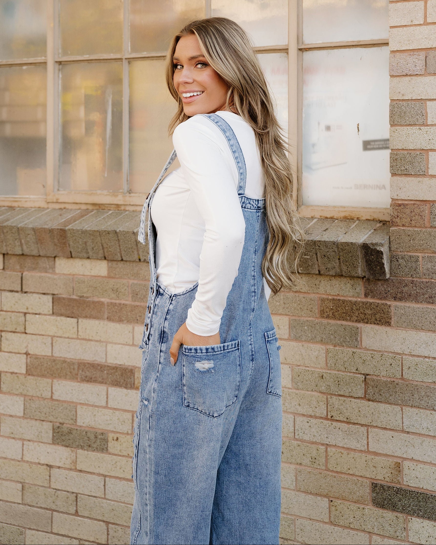 - This wide leg jumpsuit provides a modern and on-trend look.
