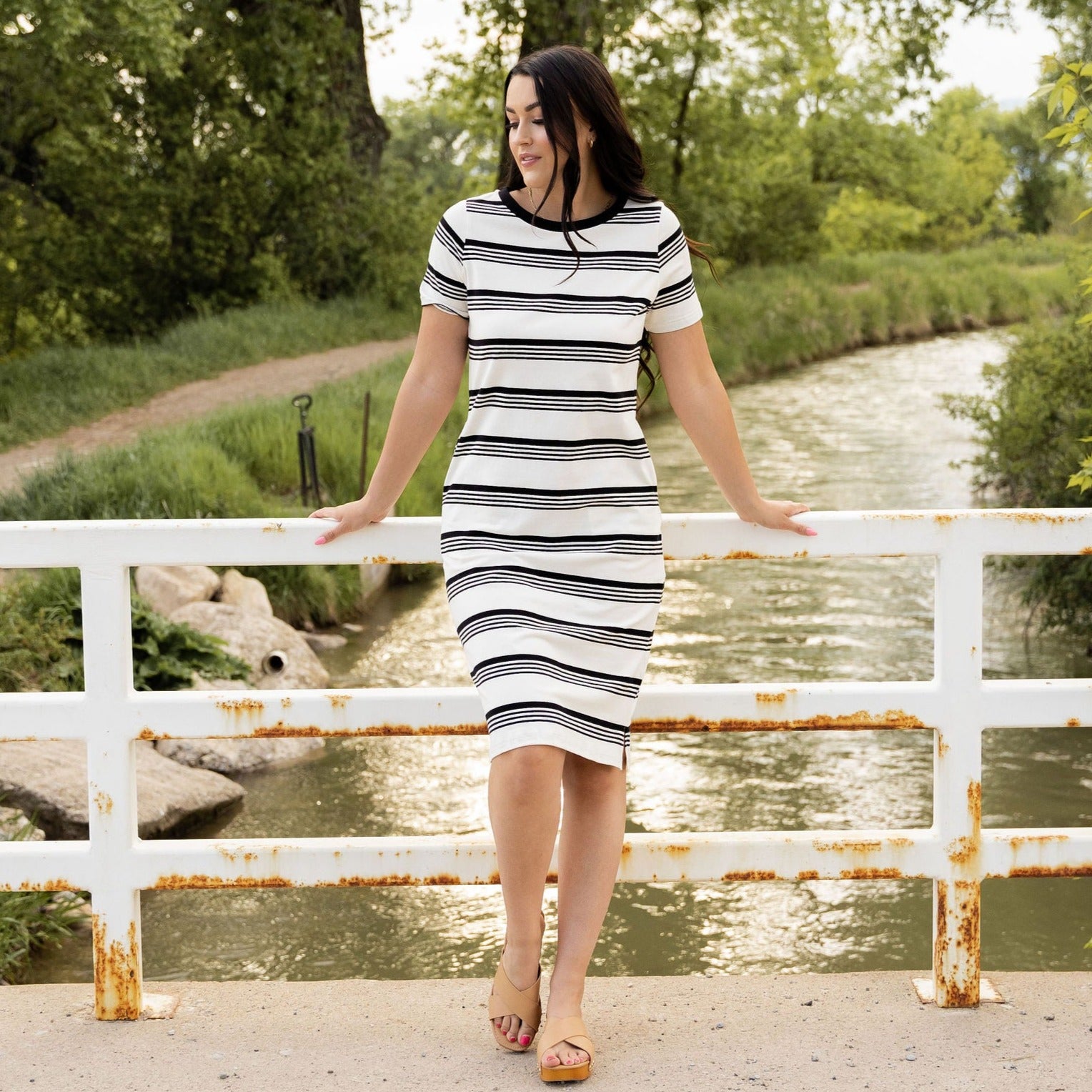Our Midi Dresses have been selling like hot cakes! They are perfect for the warm weather we have ahead of us! Our Striped Midi Dresses are our newest addition and we couldn't be happier with them! They are so comfortable, you will want to wear them day and night! So easy for those days that you need to throw something on and go! Oh! And did we mention they have pockets!?!