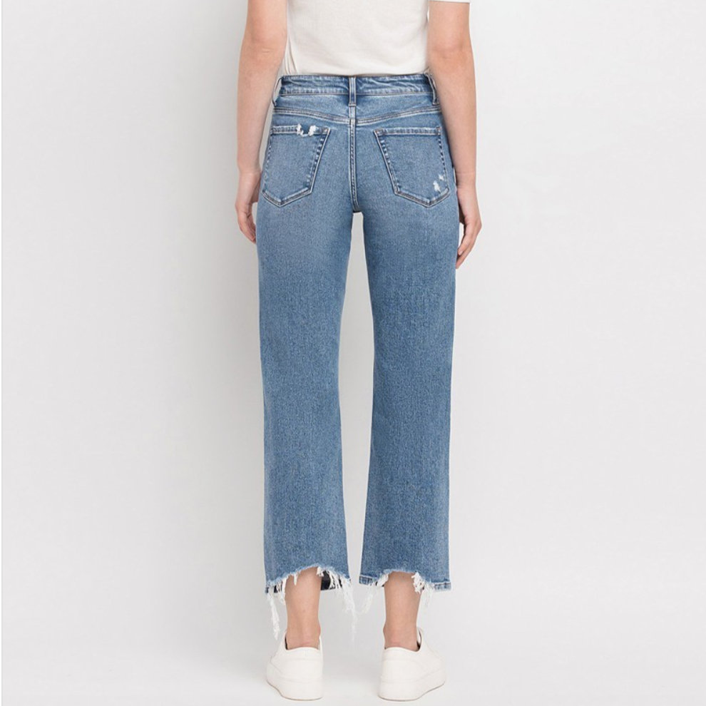 HIGH RISE DISTRESSED HEM CROP STRAIGHT JEANS