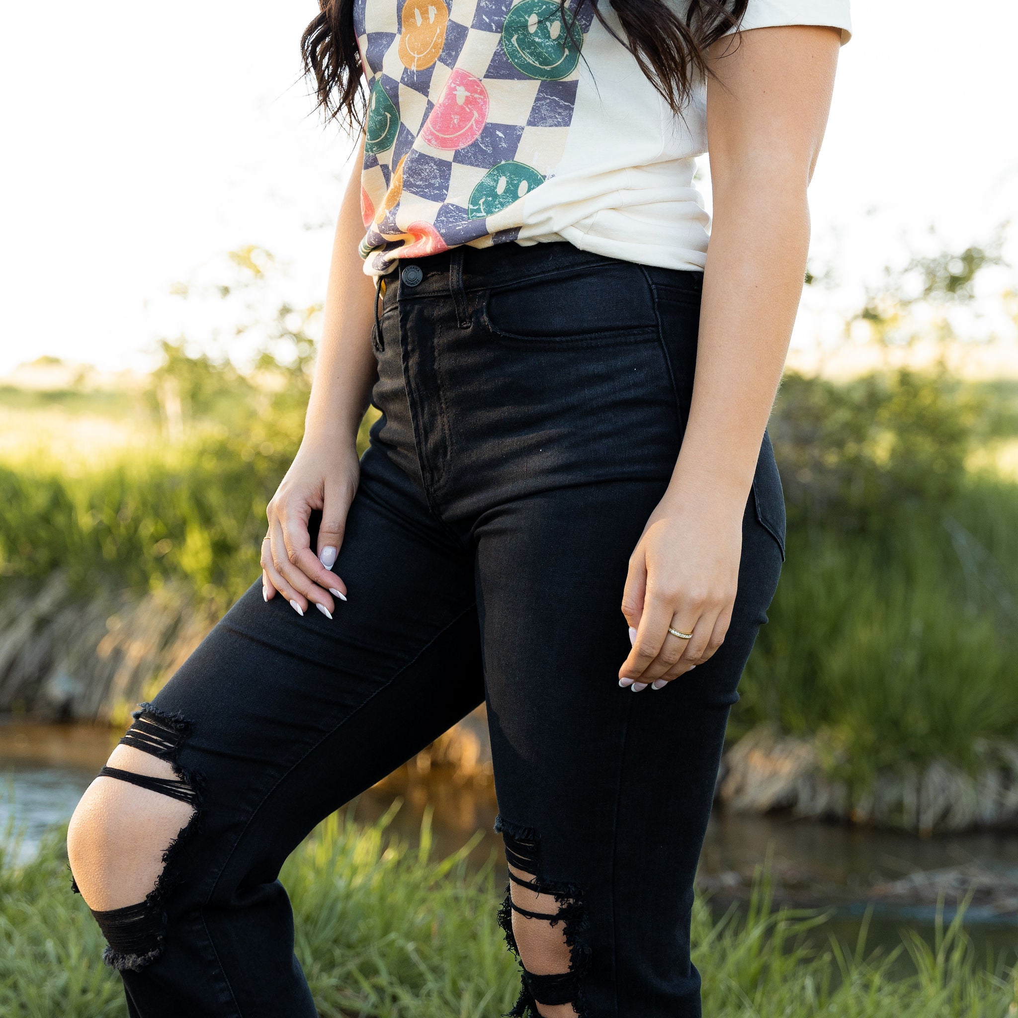 WASHED DISTRESSED KNEE AND HEM PANTS